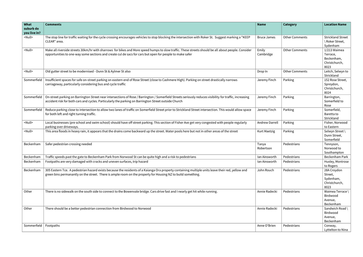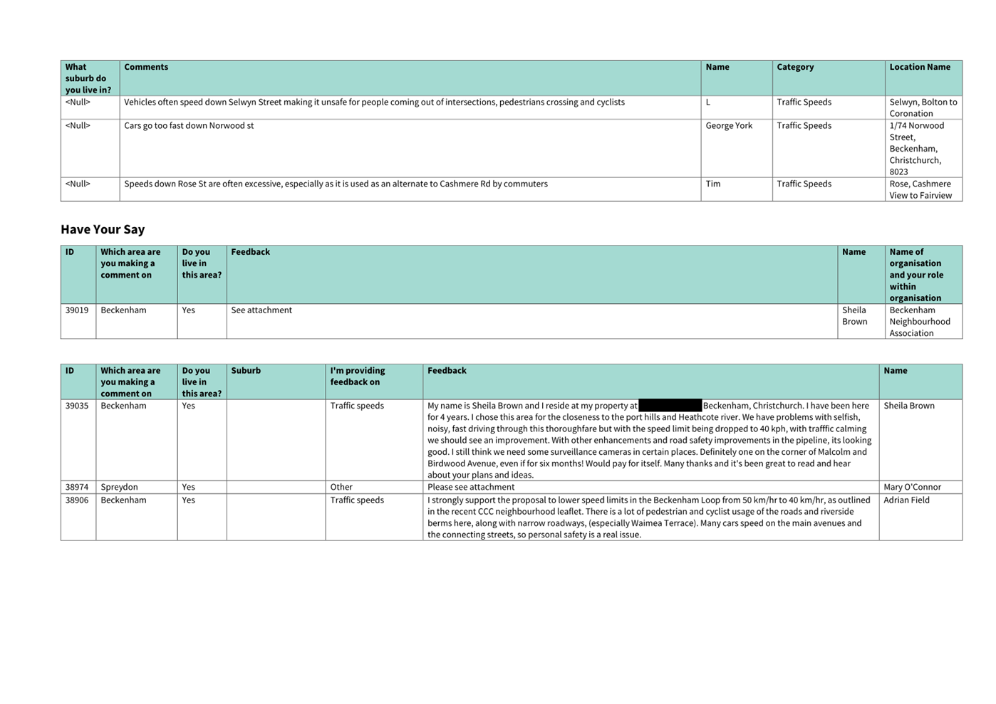 4.3 Memo – Spreydon, Somerfield, Waltham and Beckenham Christchurch Regeneration Acceleration Facility (CRAF) Programme – Update on Submissions – A memo is attached to advise the Board that it has been discovered that some submissions from the “Better Safer Roads” (CRAF) community consultation were not presented to the Community Boards in the decision report.