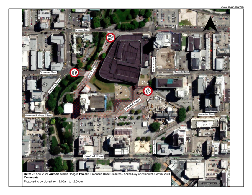 Proposed Road Closures - Anzac Day Christchurch Central 2024 |
