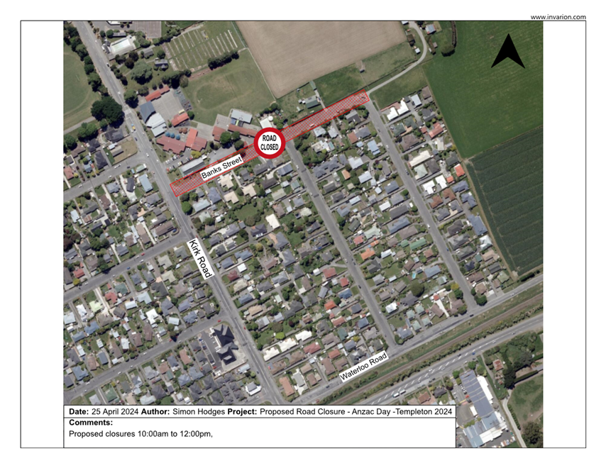 Proposed Road Closure - Anzac Day -Templeton 2024 |