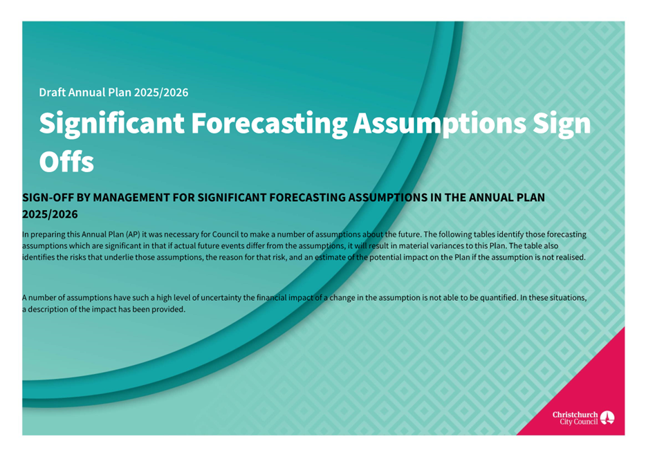 Significant Forecasting Assumptions for the Annual Plan 2025/26 |