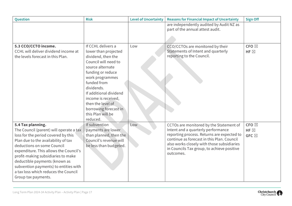 4.6 Risks have been identified and managed through the general checklists and sign-offs by management, including significant forecasting assumptions.