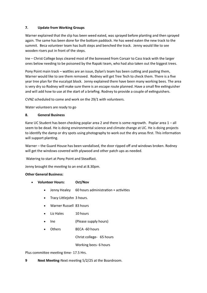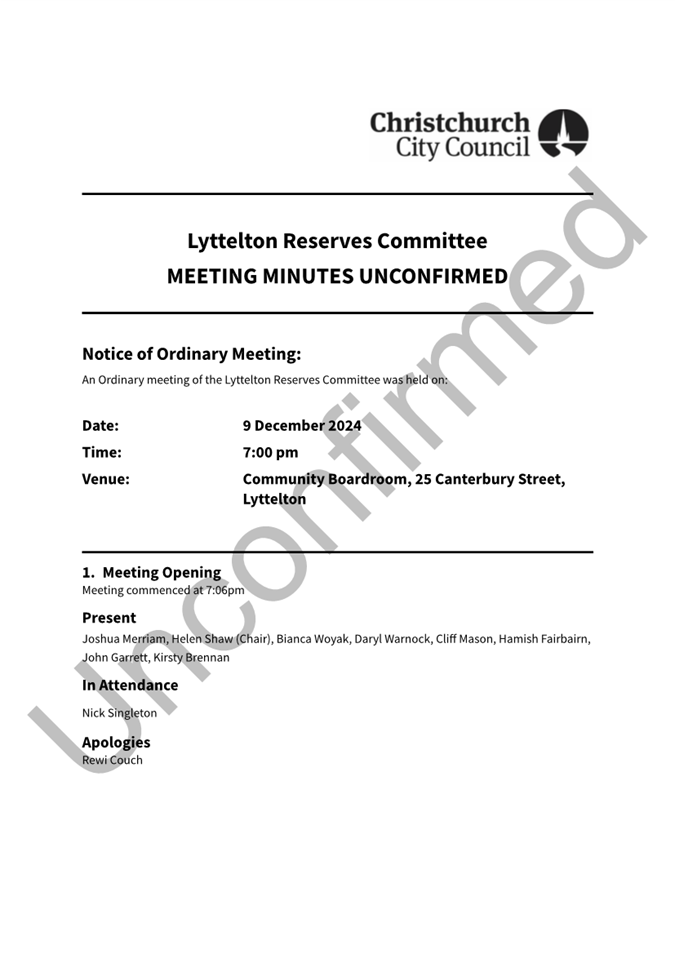 The Board had a moment of silence acknowledging the recent passing of Russell Wedge, former Parks Planner at Christchurch City Council.
