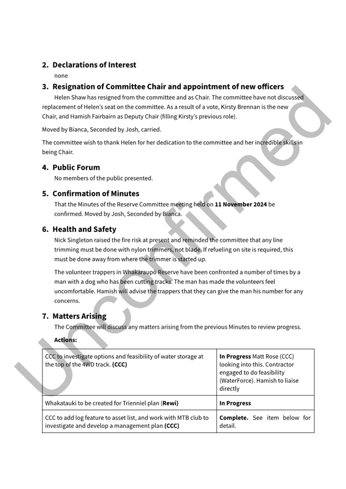 3. Confirmation of Previous Minutes Te Whakaāe o te hui o mua