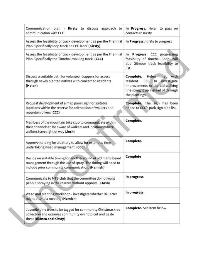 3.3.1 Report back on other Activities contributing to Community Board Plan [for items not included in the above table but are included in Community Board Plan]