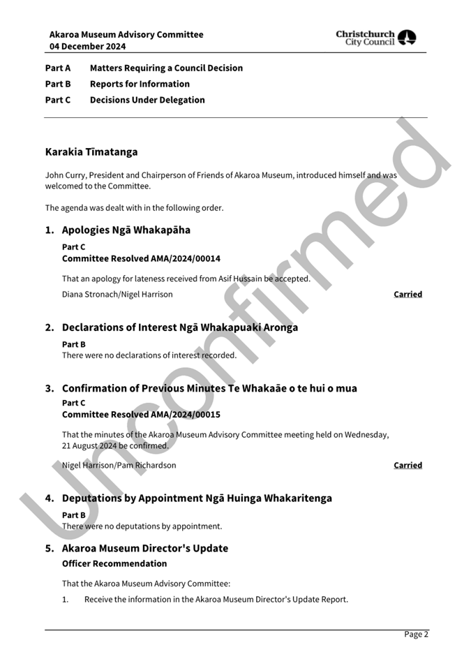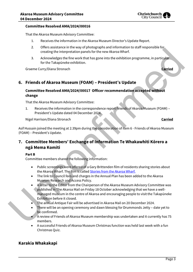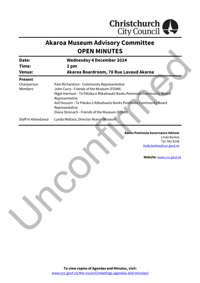 B 8. Akaroa Museum Advisory Committee Meeting Minutes.................................. 31
