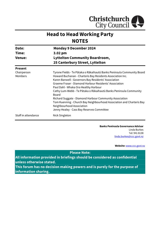 B 9. Head to Head Walkway Working Party Notes............................................... 37