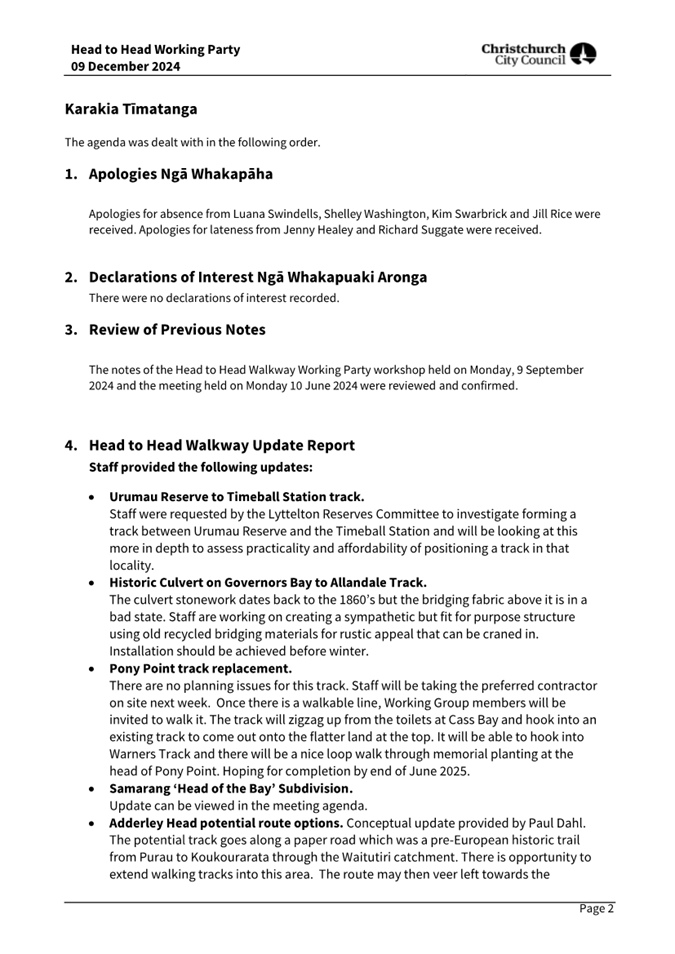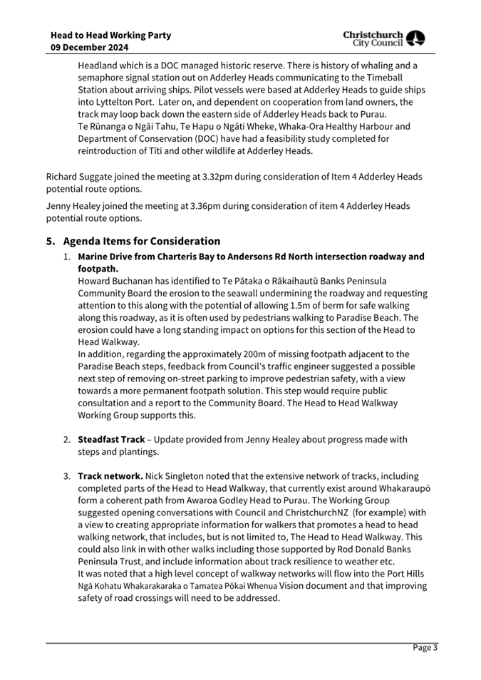 Attachments a Item 4.2 - Te Pātaka o Rākaihautū Banks Peninsula Community Board - Public Forum - Marine Drive, Charteris Bay – Maintenance and Safety - 9 December 2024 |