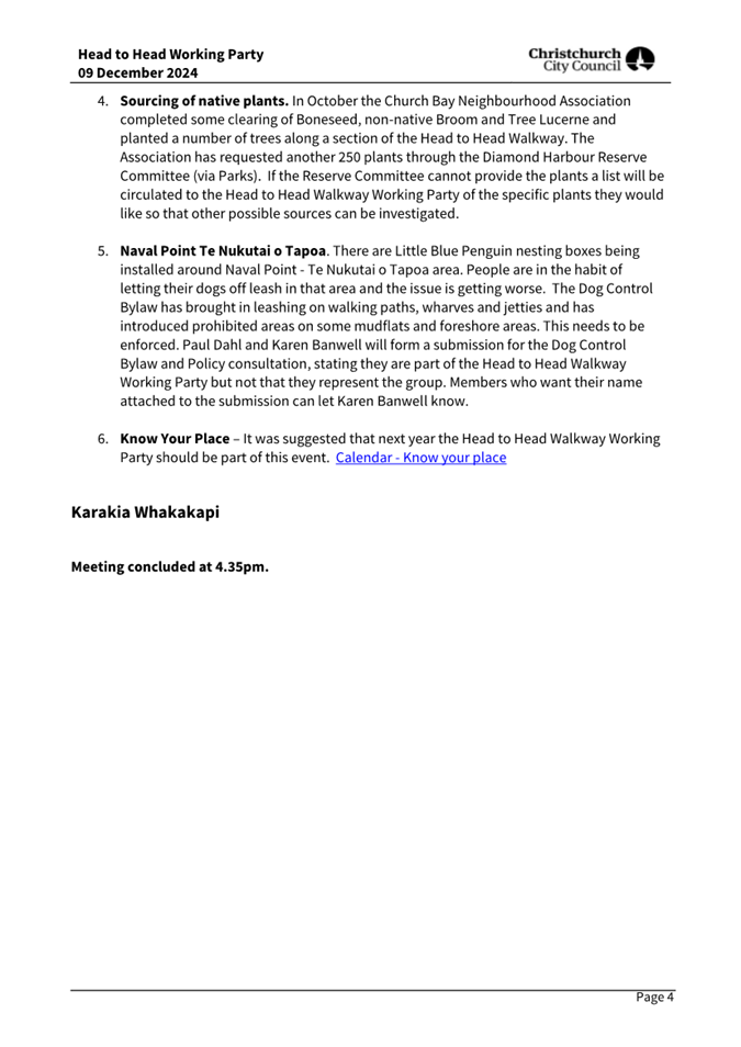 Attachments a Item 4.1 - Te Pātaka o Rākaihautū Banks Peninsula Community Board - Public Forum - Donald Street & Seafarers Centre and 175th anniversaries of the arrival of the first four ships to Lyttelton and the Holy Trinity Anglican Church in 2025 9 December 2024 |
