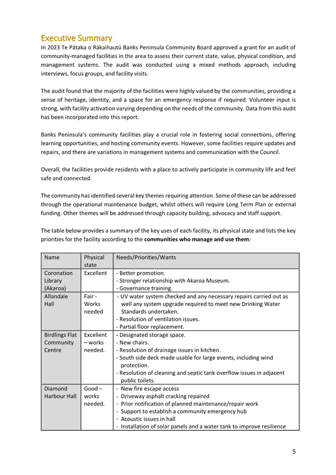 B 10. Banks Peninsula Community Managed Facilities Update............................... 43