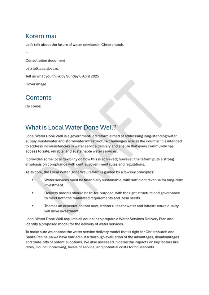 c. Local Water Done Well - Draft Consultation Document.......................................................... 3