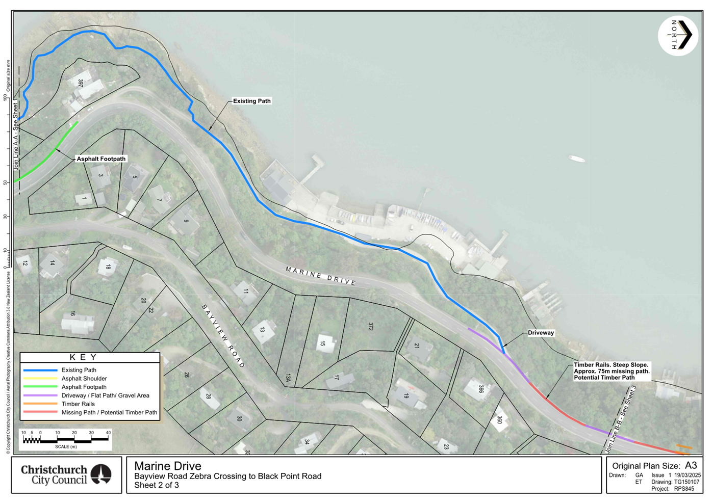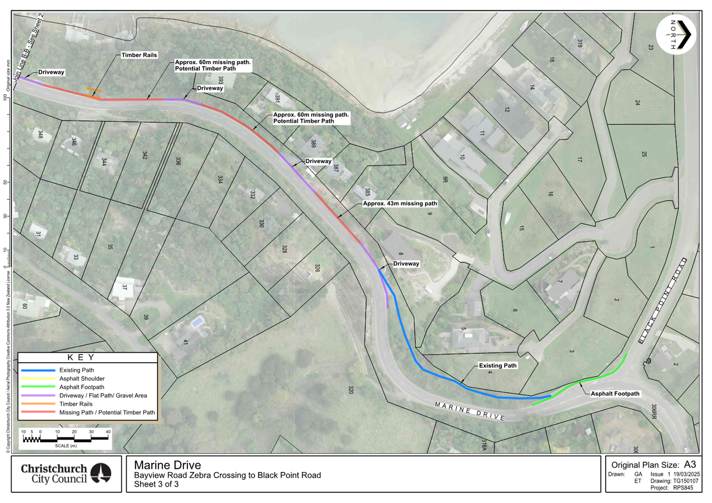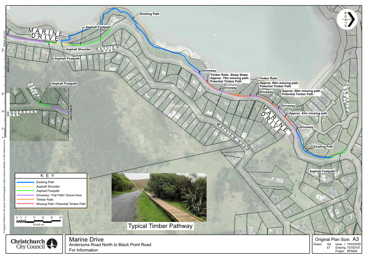 2.       Along Marine Drive – whether 200 metres of missing footpath in Charteris Bay can be established.