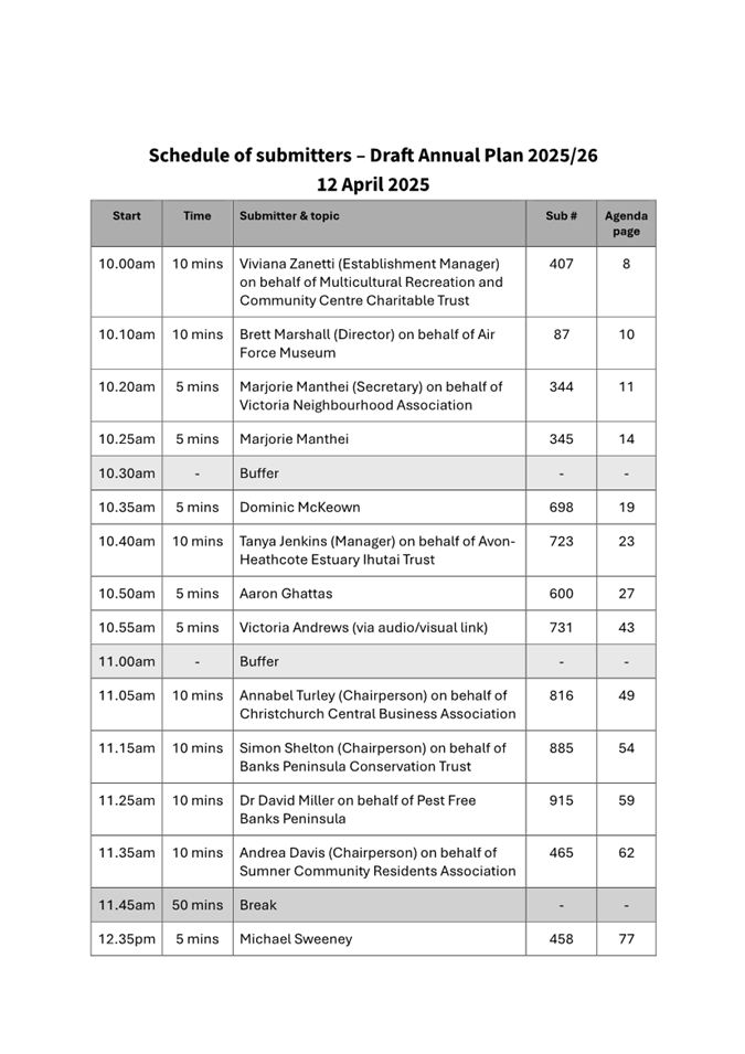 3. Draft Annual Plan 2025/26 - Hearing of verbal submissions - Saturday 12 April 2025... 5