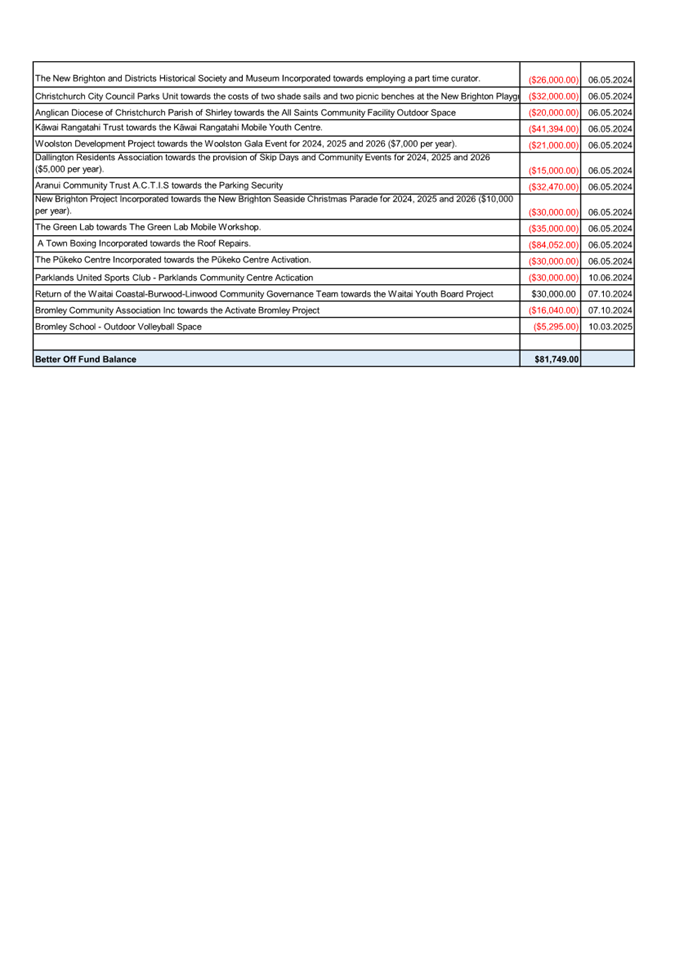 Waitai Coastal-Burwood-Linwood Community Board - Funding Update March 2025 |