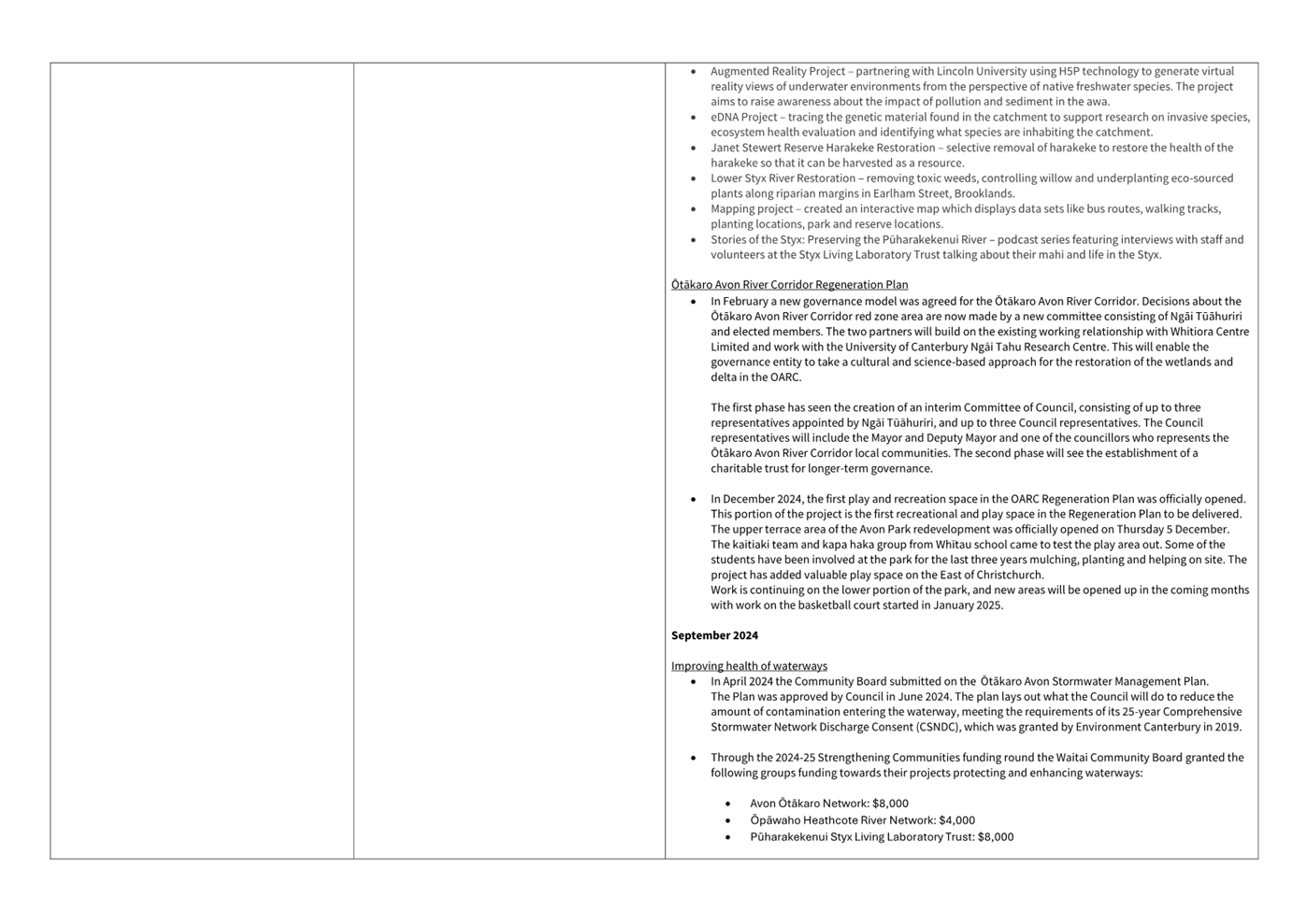 Waitai Coastal-Burwood-Linwood Community Board - Board Plan Monitoring Report March 2025 |