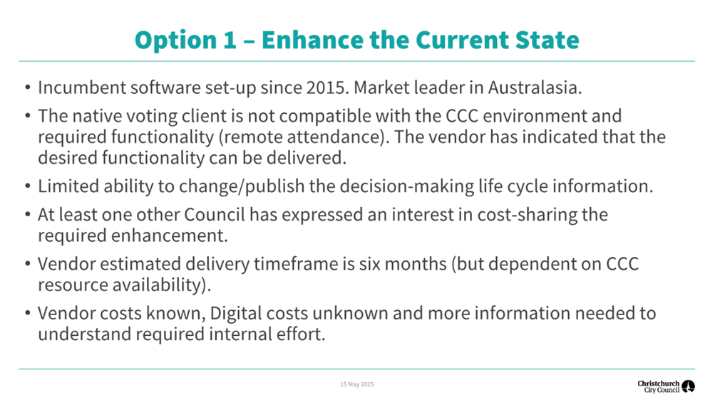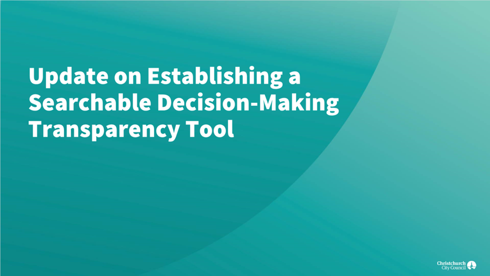 The Christchurch City Council is required to have decision-making information available to citizens. For example: Christchurch currently meets all statutory obligations around the availability of decision-making information. The initiative presents an opportunity to enhance the quality of available information and increase citizen engagement with the process. |