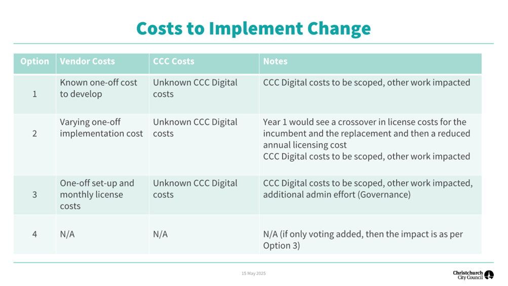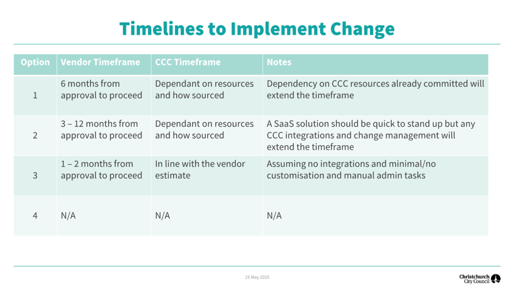 Based on the guidance received in this workshop, staff will scope the work for any change that is required and complete the necessary project steps, including: · an RFP (if needed), · sourcing of funding · Assessment of required resources and what work may need to be stopped or deferred to deliver changes · The development of a timeline for the implementation of changes. |