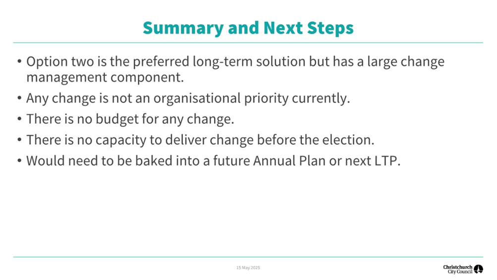 The following Workshop (22 May 2025) will seek guidance on: · Each of the specific Consultation Document options · Capital deliverability · Other financial issues and options |