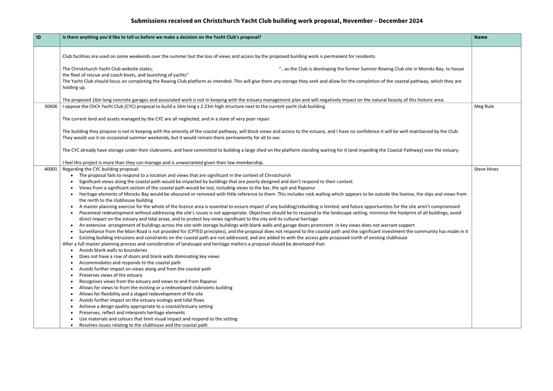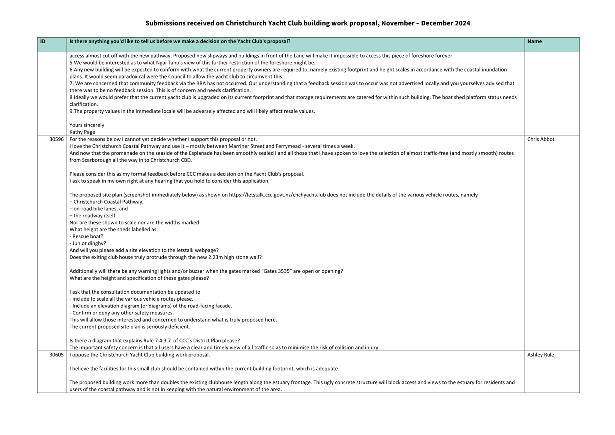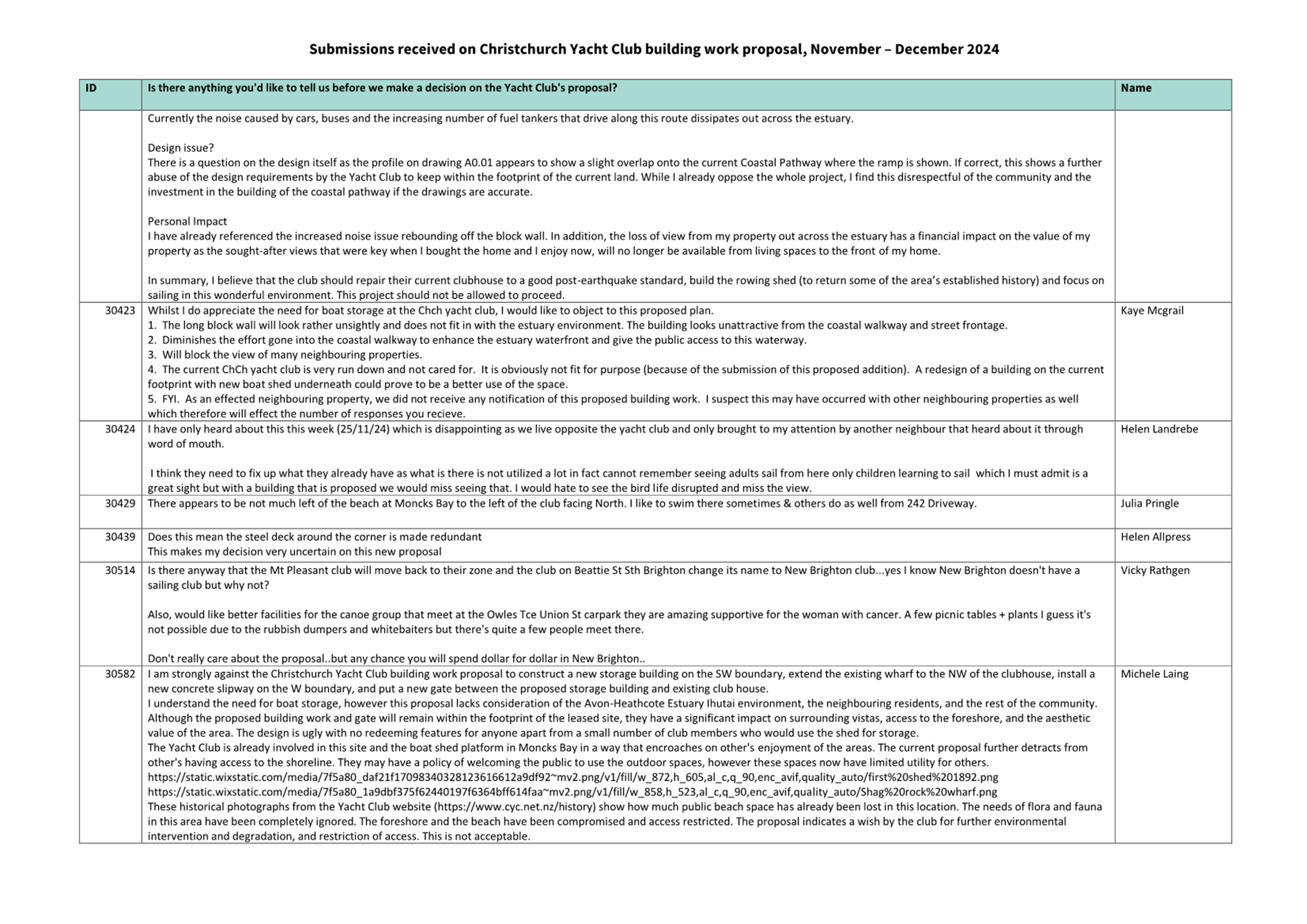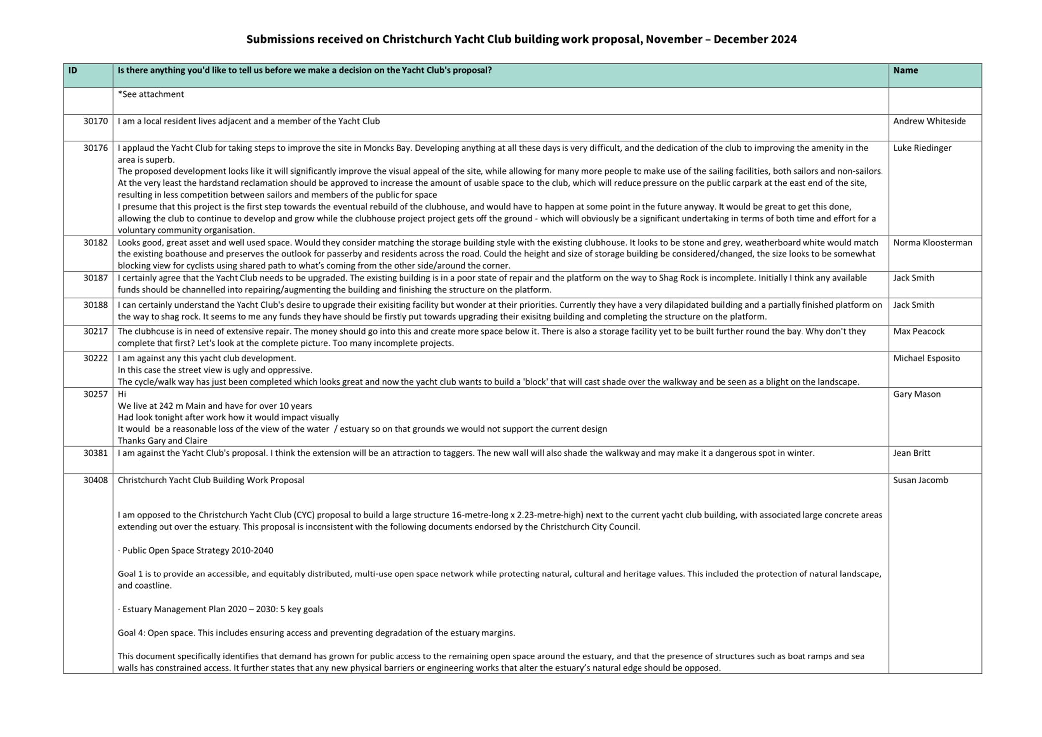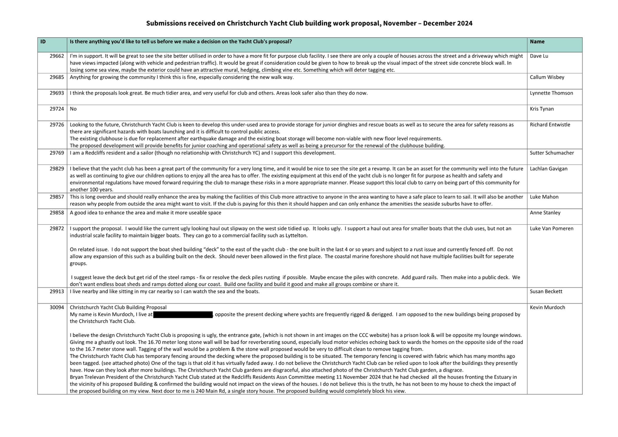 Christchurch Yacht Club - Submission Table - December 2024 - public |