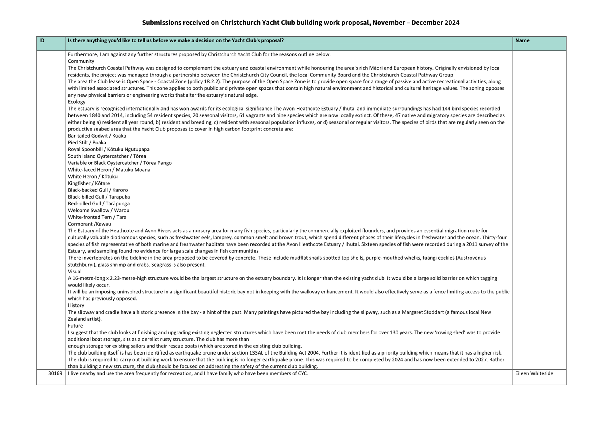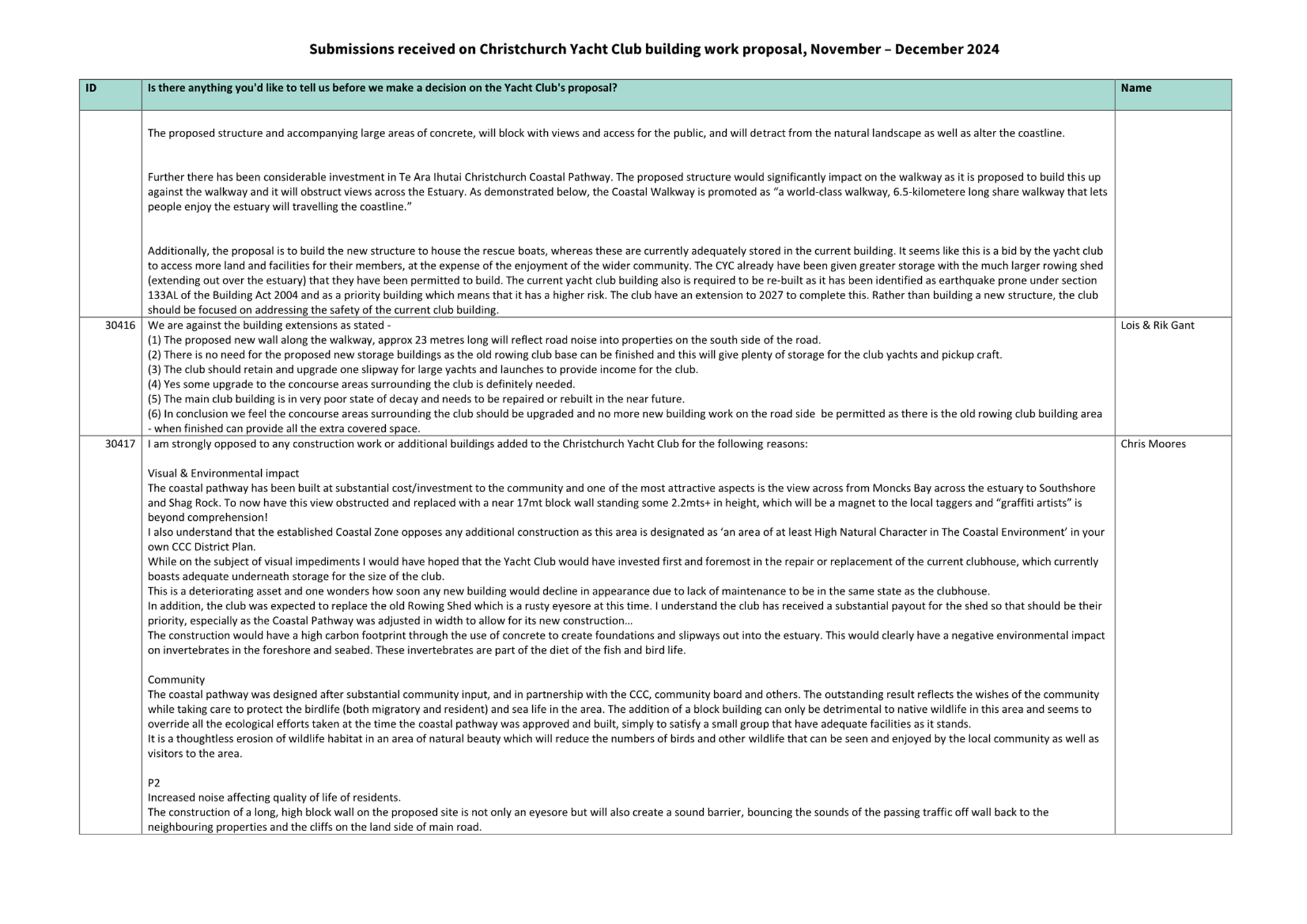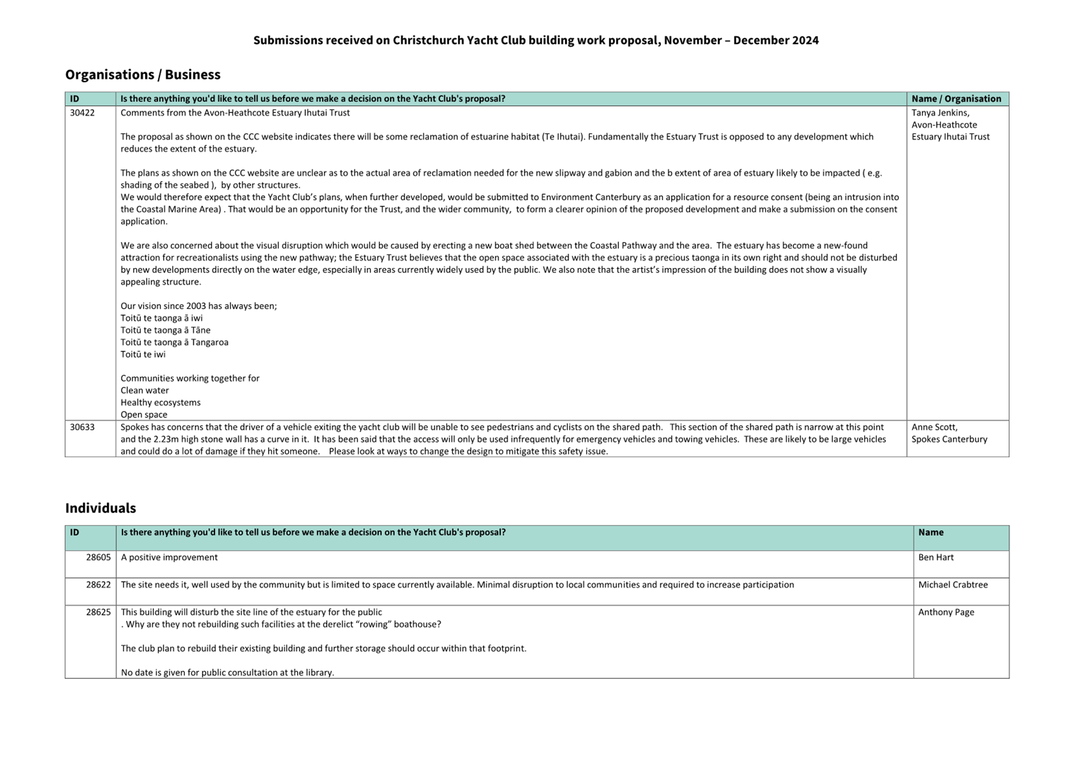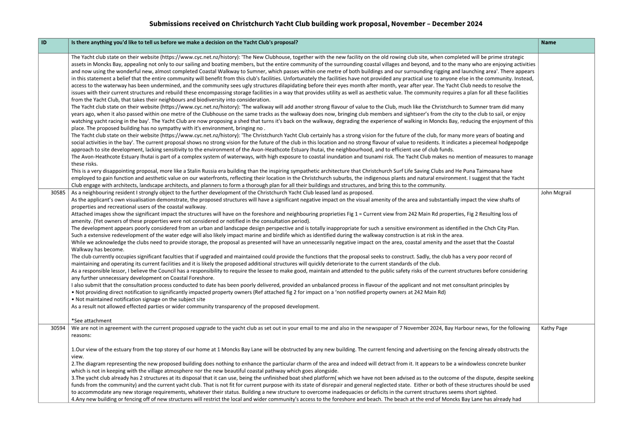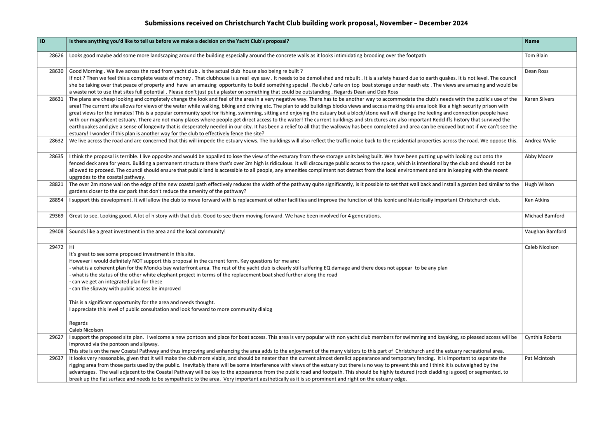 Christchurch Yacht Club - Submission Table - December 2024 - public |