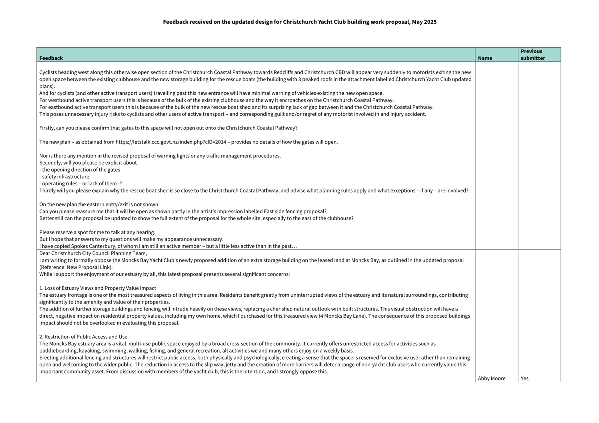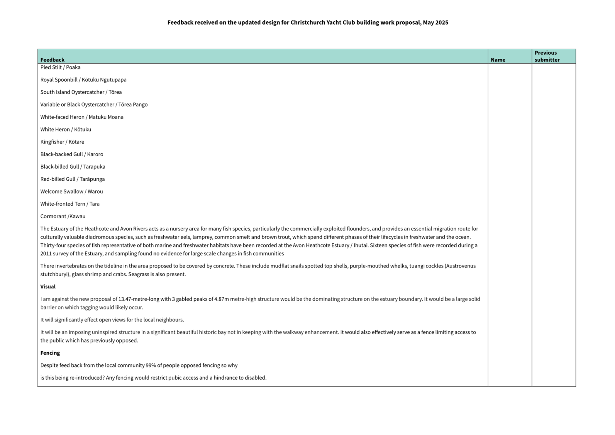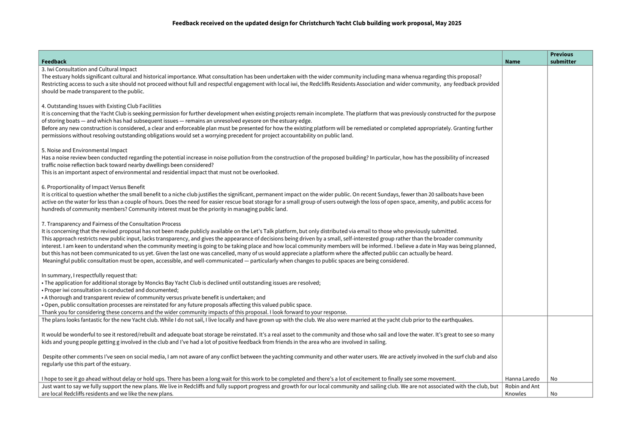 Christchurch Yacht Club - Further Submissions Table - May 2025 |