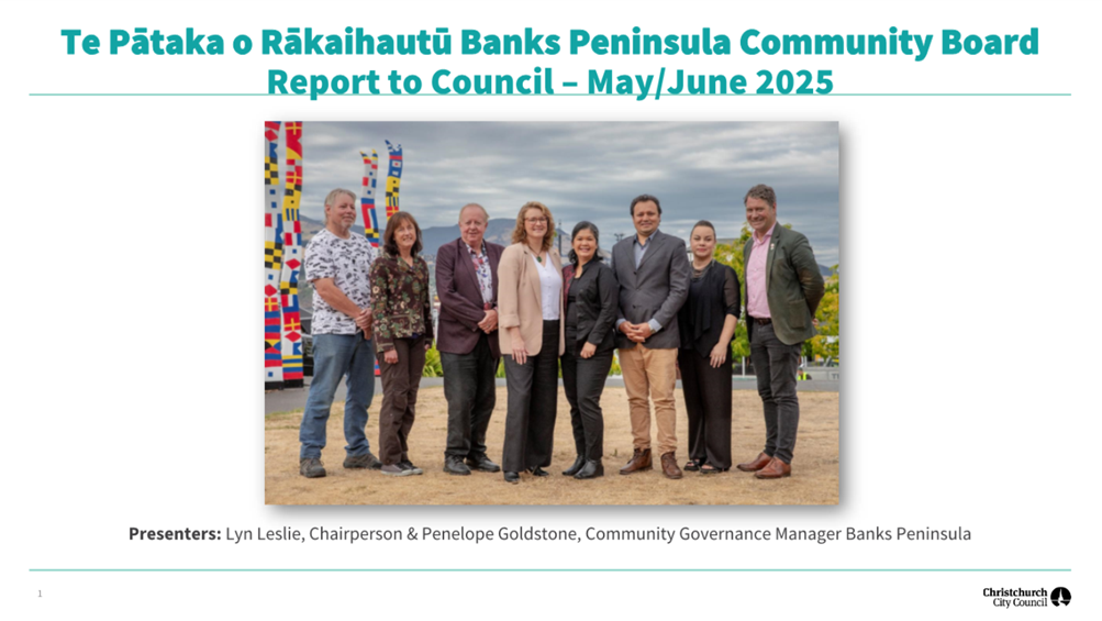 F. Te Pātaka o Rākaihautū Banks Peninsula Community Board - Presentation to Council........ 55