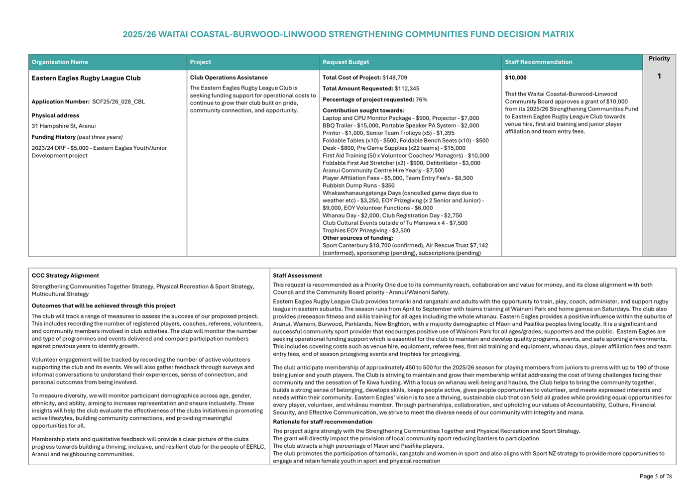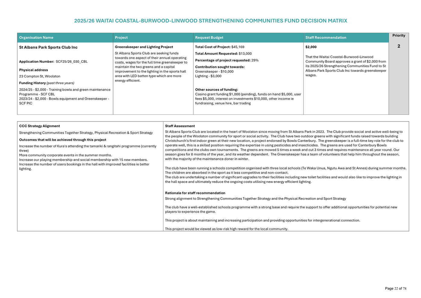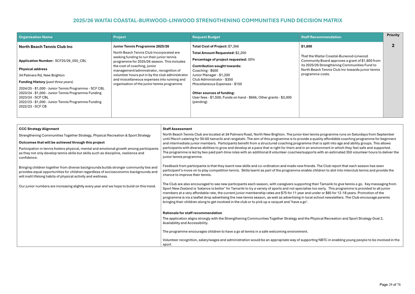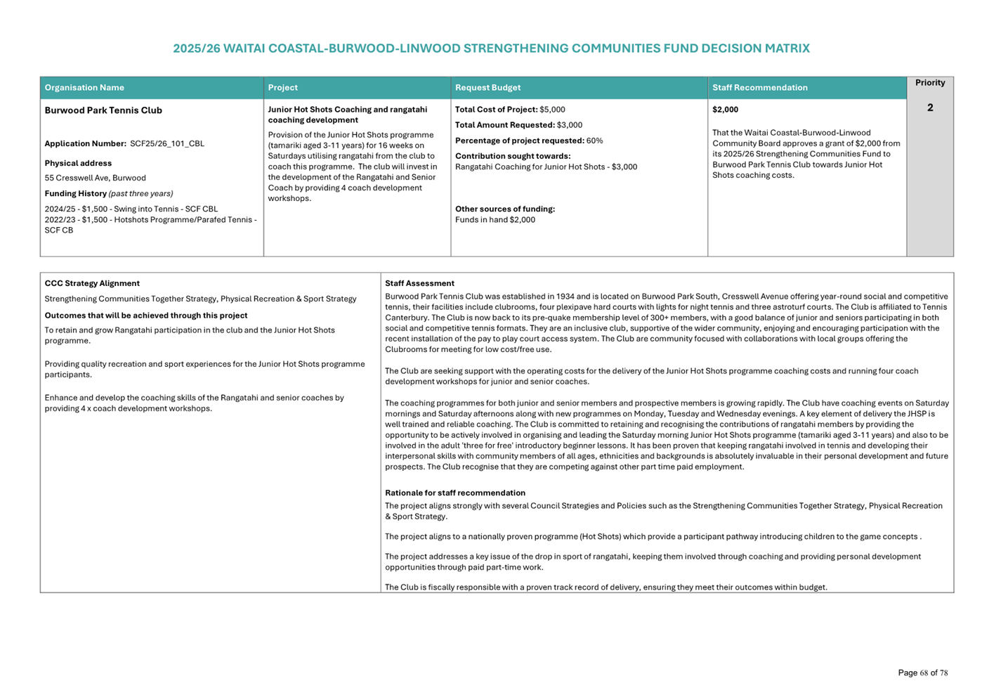Waitai Coastal-Burwood-Linwood 2025-26 Strengthening Communities Fund Decision Matrix FINAL |