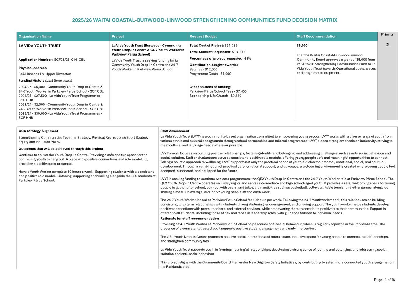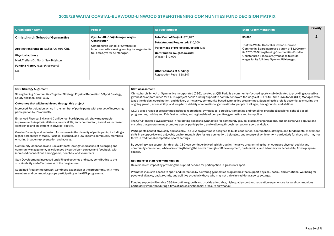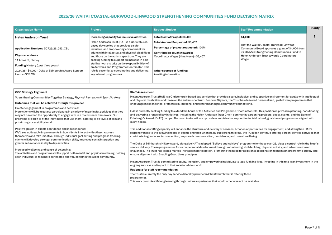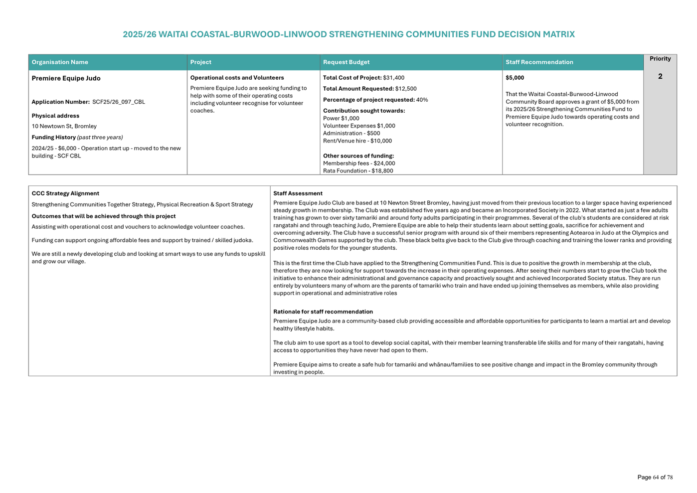 Waitai Coastal-Burwood-Linwood 2025-26 Strengthening Communities Fund Decision Matrix FINAL |