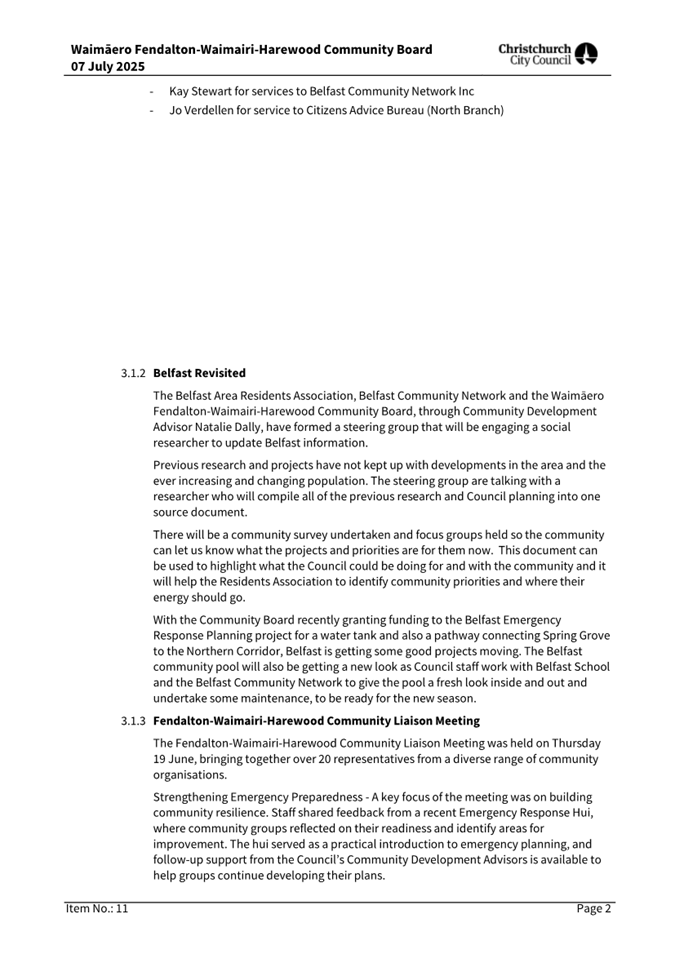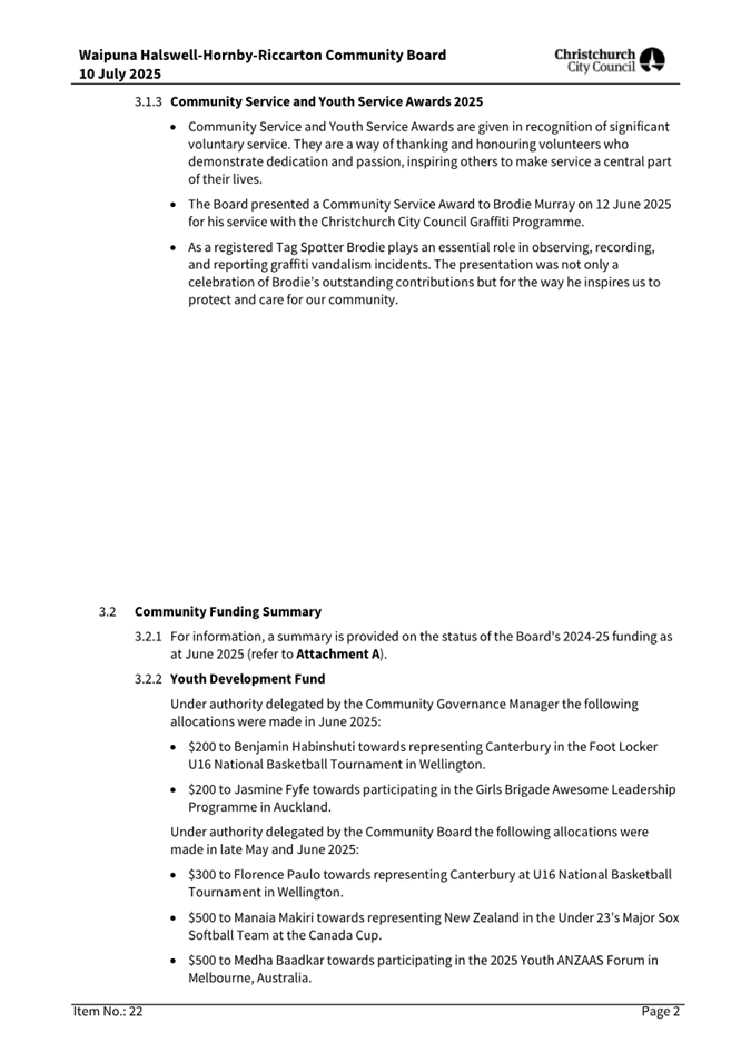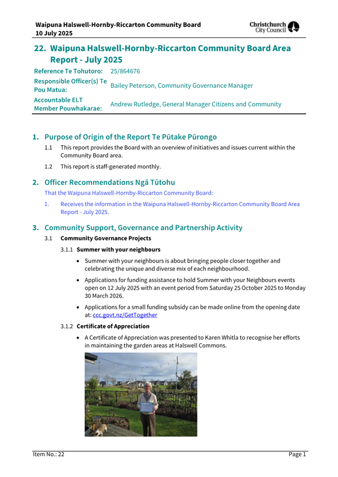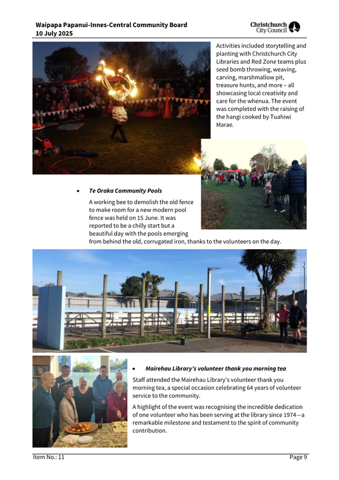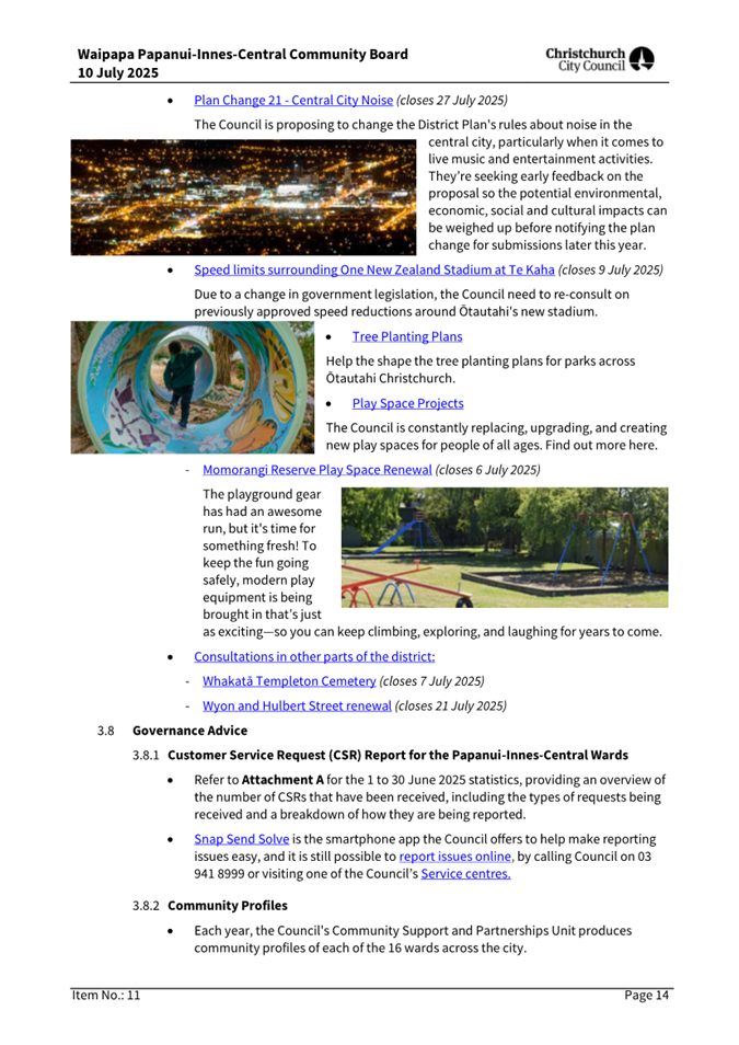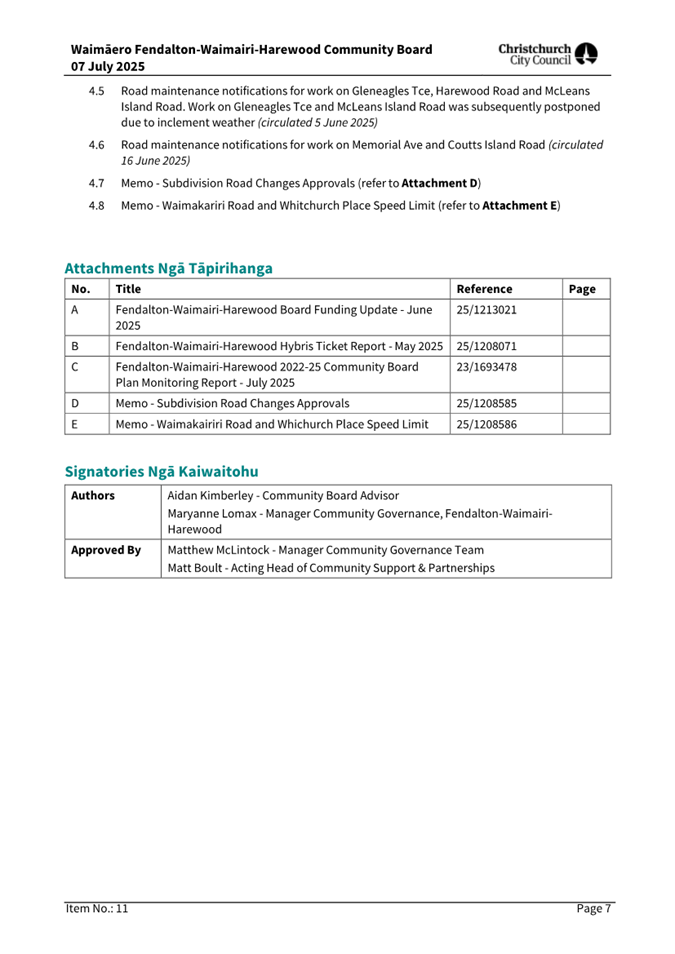 10. Monthly Report from the Community Boards - July 2025....................................... 45