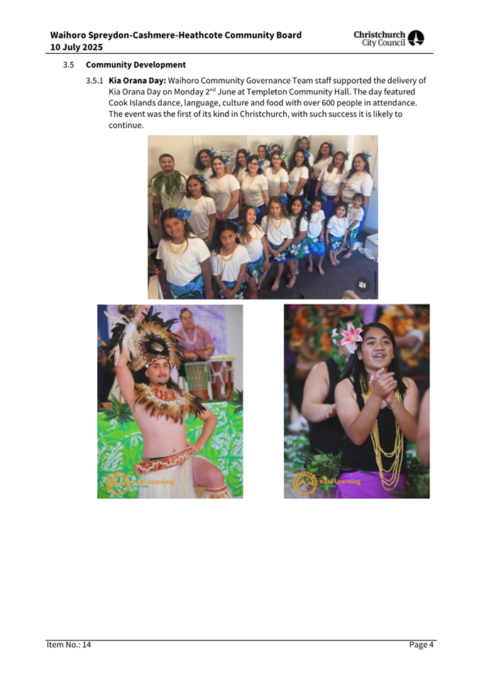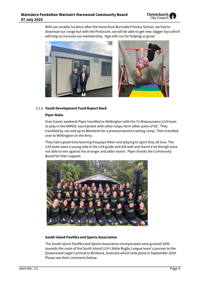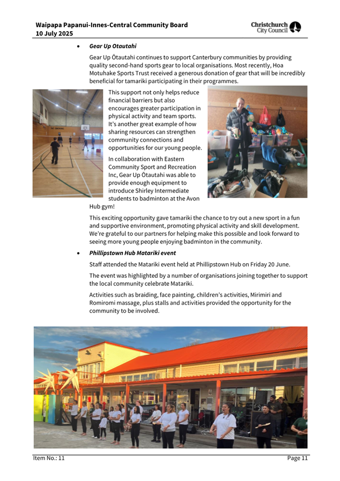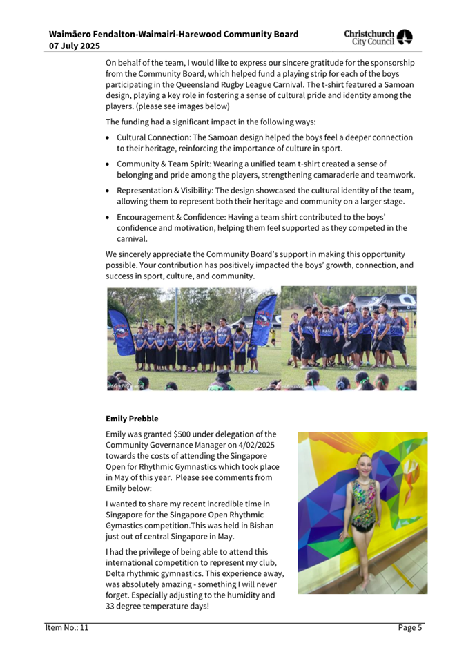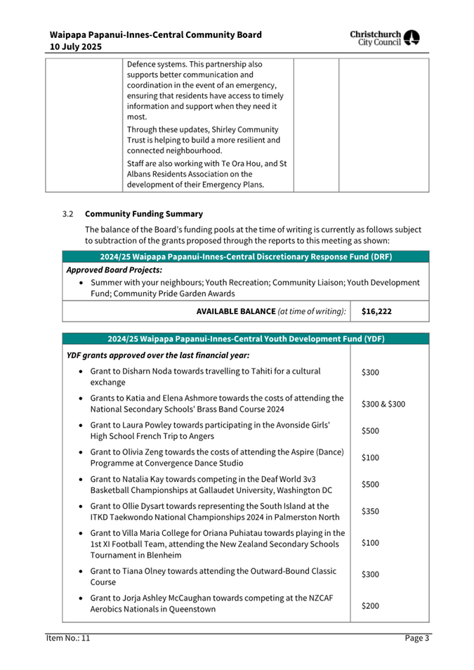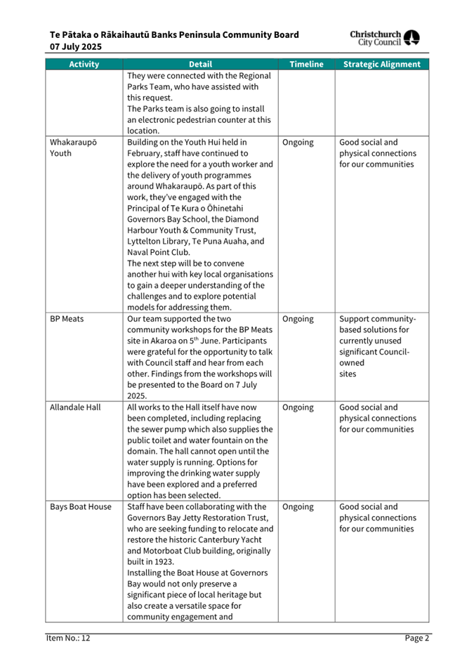 10. Monthly Report from the Community Boards - July 2025....................................... 45