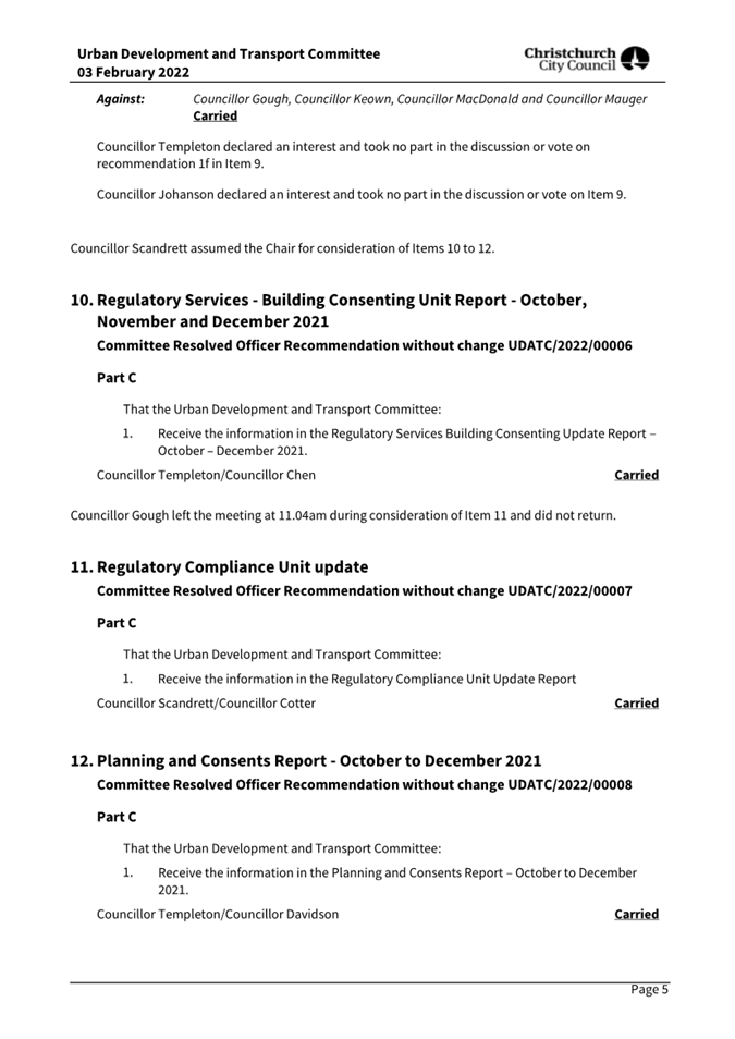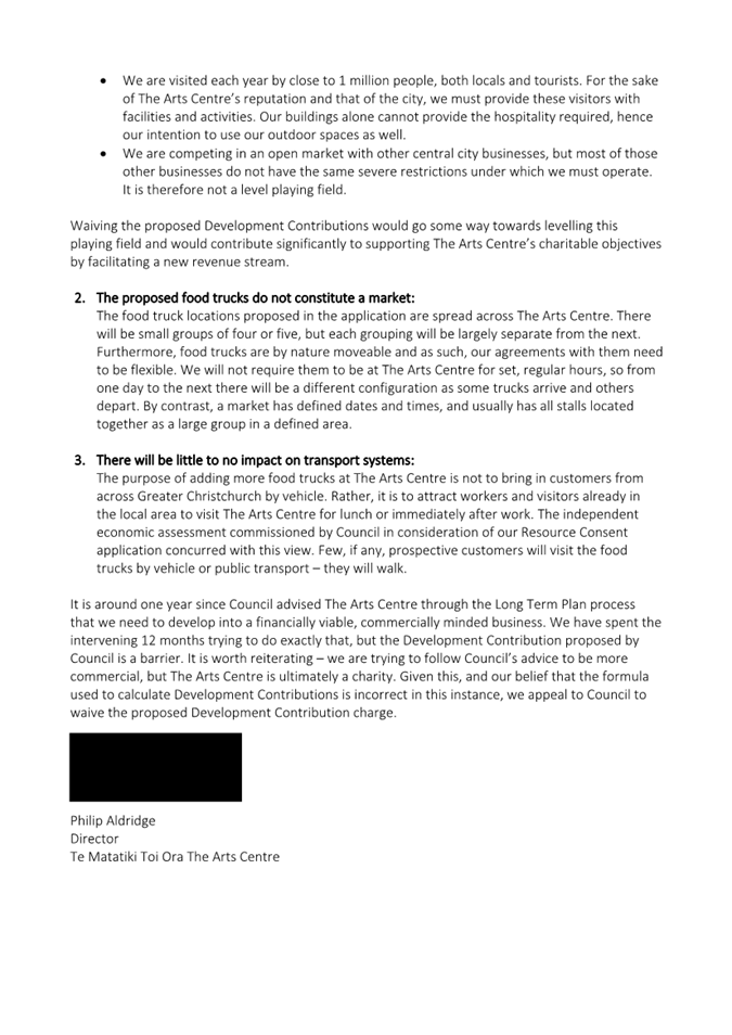 Daniel Stirland and Philip Aldridge will speak on behalf of the Arts Centre regarding Item 16 – Developments Contributions Remission Application – The Arts Centre.