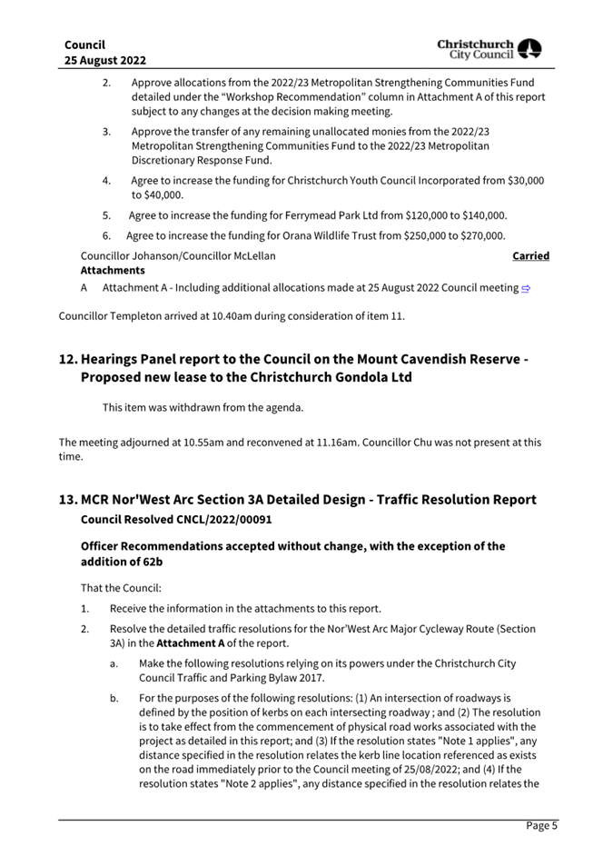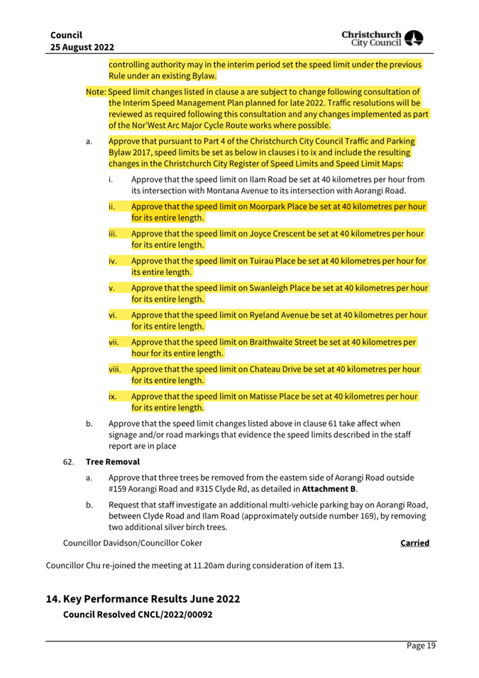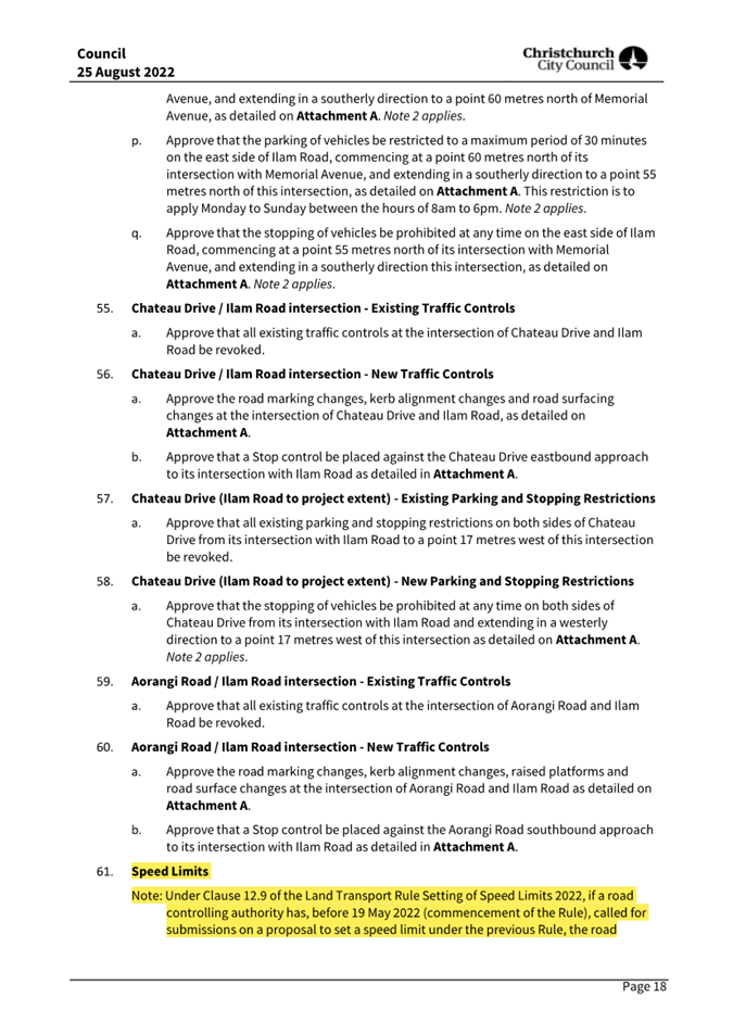 19. Setting of Speed Limits Rule 2024: Management of Non-Installed Limits - Nor'West Arc Section 3 (University to Harewood Road).......................................................... 267