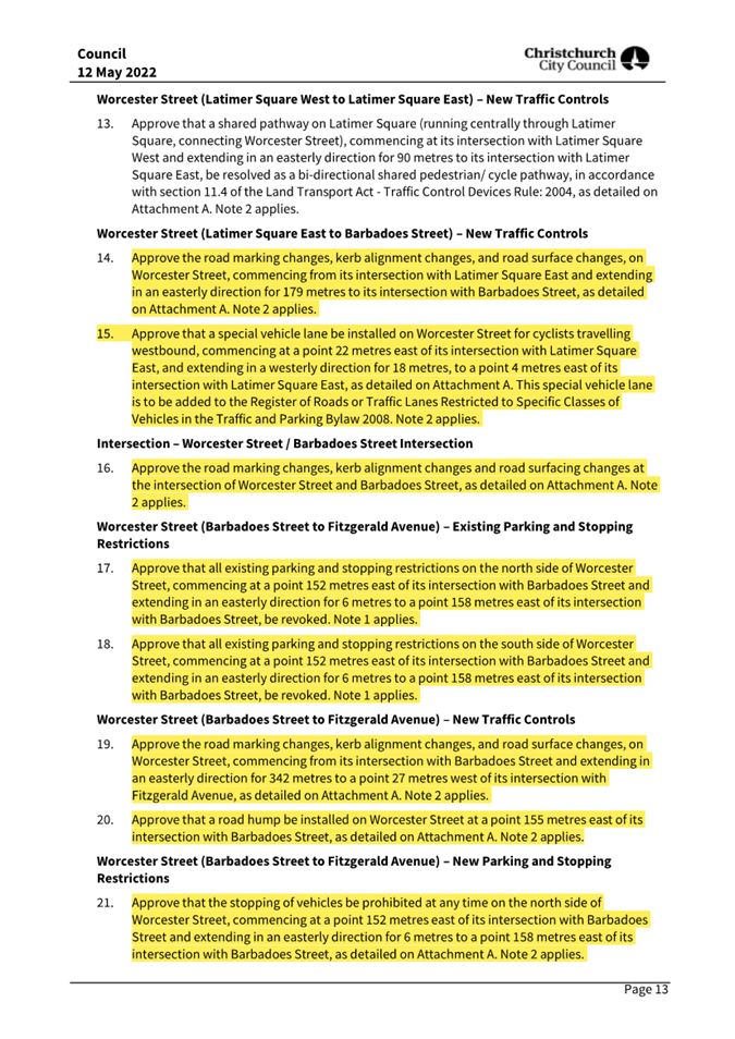 20. Setting of Speed Limits Rule 2024: Management of Non-Installed Limits - Worcester Street (Latimer Square to Fitzgerald Ave)................................................................... 309