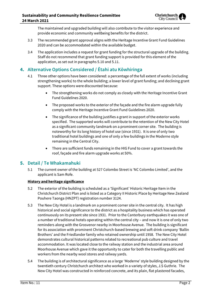 22. Extension of Time for Heritage Incentive Grant to 527 Colombo Street, New City Hotel 335
