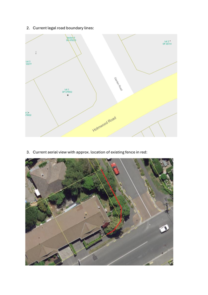 Community Board Resolved FWHB/2025/00027 Officer recommendations accepted without change. Part C That the Waimāero Fendalton-Waimairi-Harewood Community Board: 1. Receives the information in the Road Stopping at 40 Garden Road, Merivale Report. 2. Notes that the decision in this report is assessed as low significance based on the Christchurch City Council’s Significance and Engagement Policy. 3. Notes that the proposed road stopping has been assessed and approved by staff. 4. Resolve pursuant to Sections 116(1), of the Public Works Act 1981 to stop and sell to the adjoining owner that parcel of land shown as Section 3 SO 466494 in Attachment A to this report containing 35m2, and to amalgamate that parcel of land with the adjoining land contained in Record of Title CB8K/740. 5. Approves the Manager Property Consultancy under delegated authority to undertake all actions, negotiations and conclude the agreements necessary to facilitate the above on terms and conditions acceptable to him at his sole discretion, and in doing so make any decisions necessary to give effect to this. Sam MacDonald/James Gough Carried |