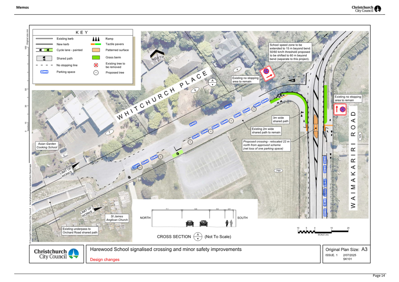 The Council is proposing to lower the speed on Whitchurch Place and Waimakariri Road to make it safer for children and families getting to and from Harewood School and support the proposed installation of a safer crossing on Waimakariri Road.