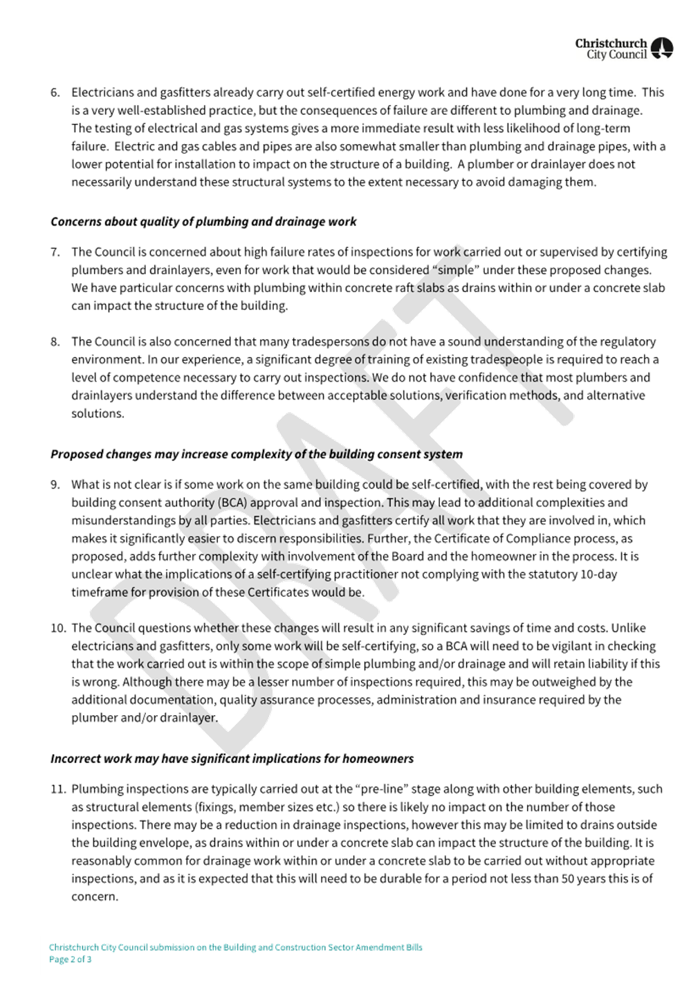 not allow for consideration of a draft submission by the Council