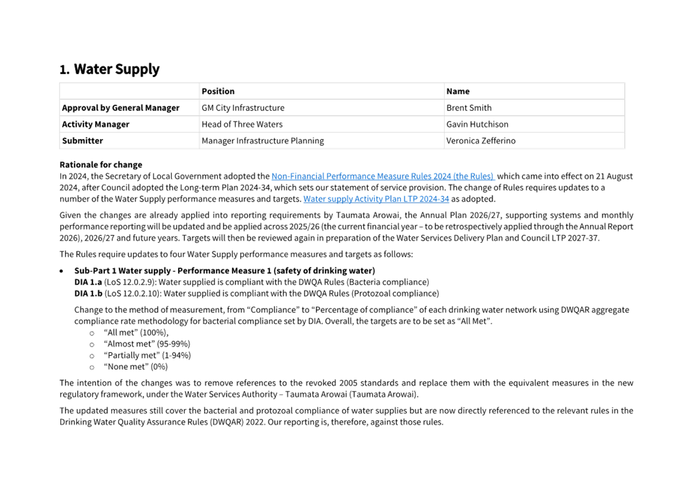 · Amending levels of service targets, unless the decision is precluded under section 97 of the Local Government Act 2002.
