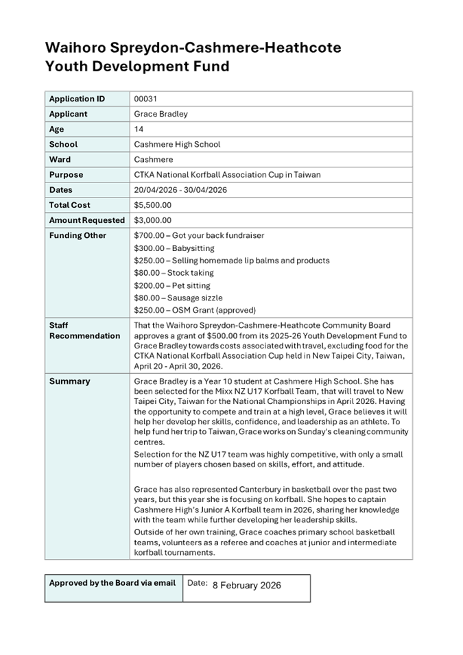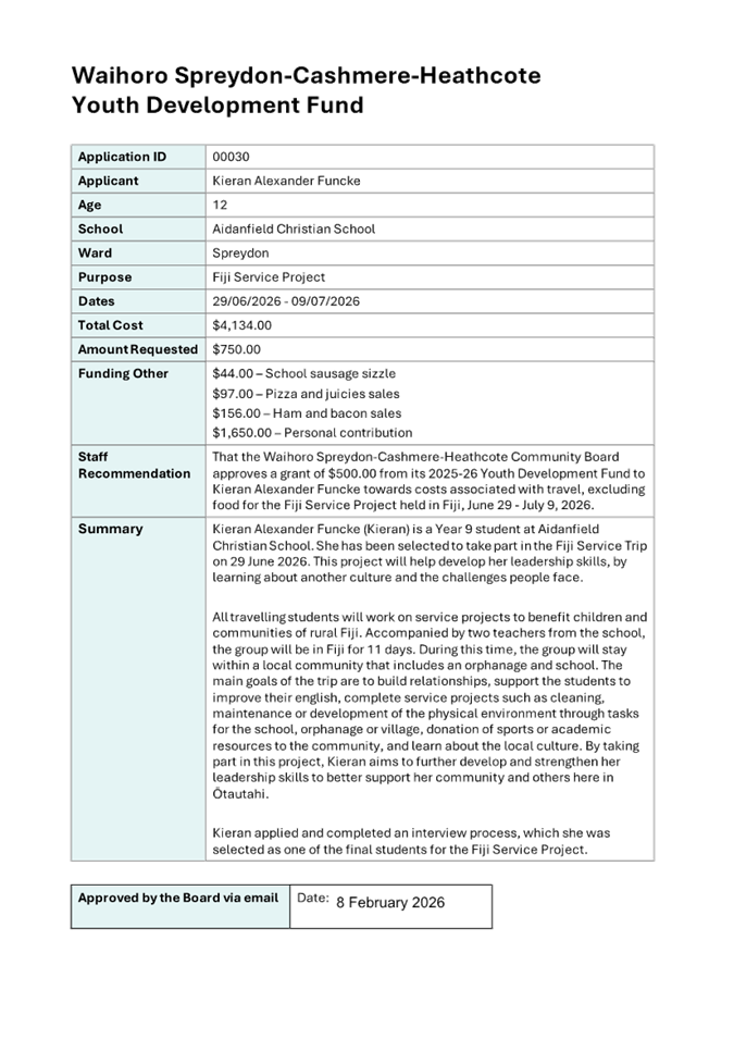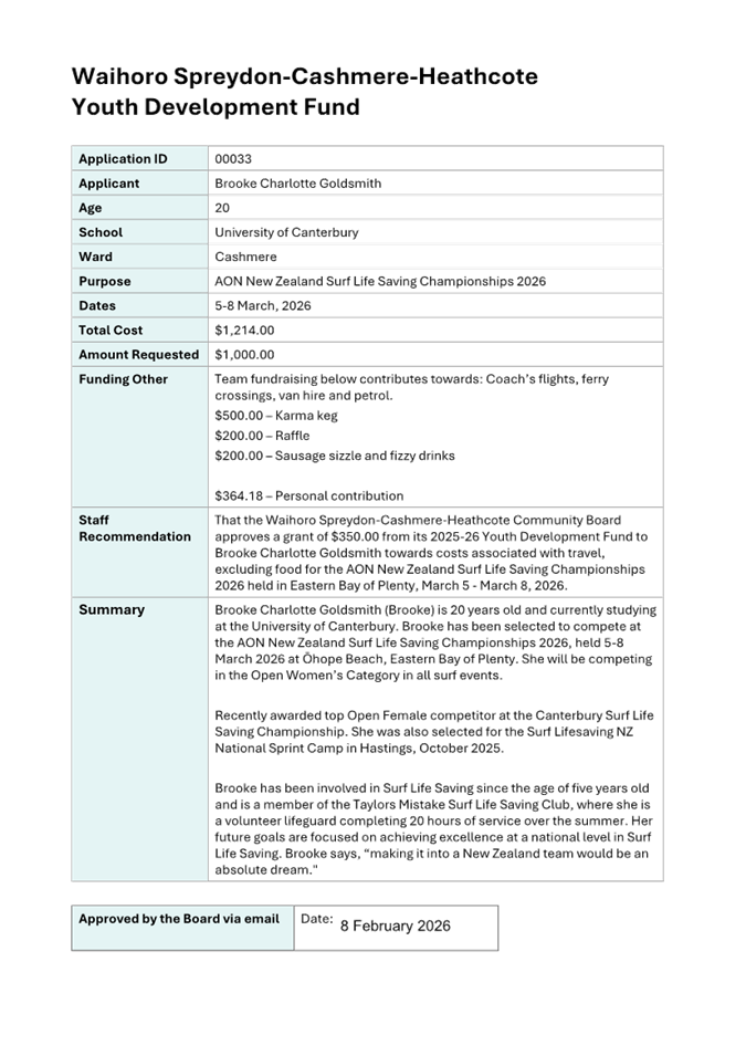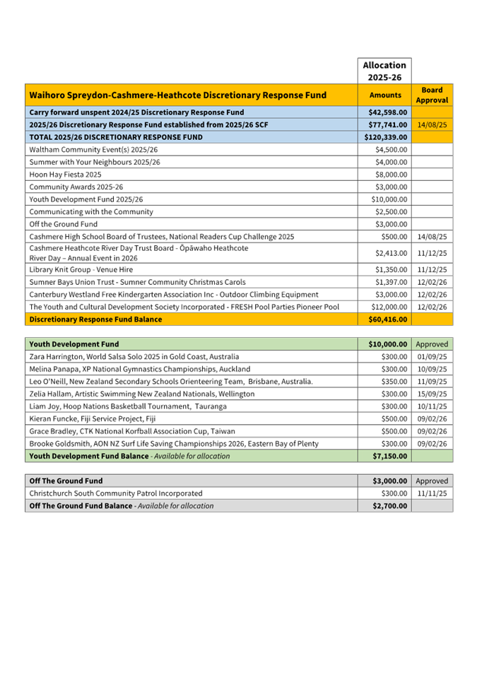 Waihoro Spreydon-Cashmere-Heathcote 2025-26 Discretionary Response Fund - Sumner Bays Union Trust, Westland Free Kindergarden, Youth and Cultural Development