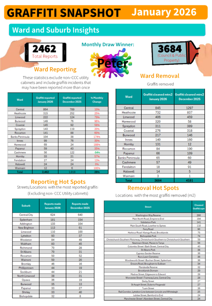 C          13.      Waihoro Spreydon-Cashmere-Heathcote Community Board Area Report - March 2026..................................................................................................... 103