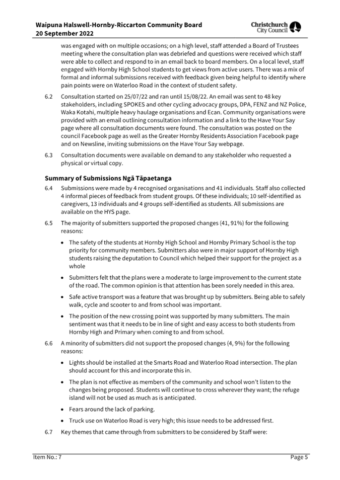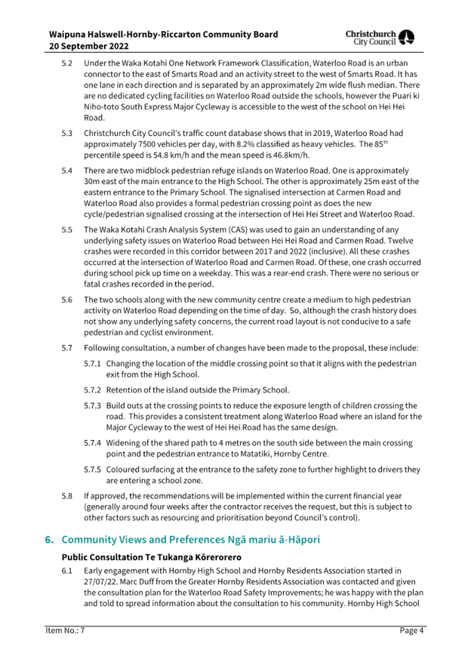 Community Board Consideration Staff in attendance spoke to the accompanying report. The Board took into consideration the deputations from Rochelle Ellery (Item 5.1 refers) and Helena and Adrian Dinnissen (Item 5.2 refers). |