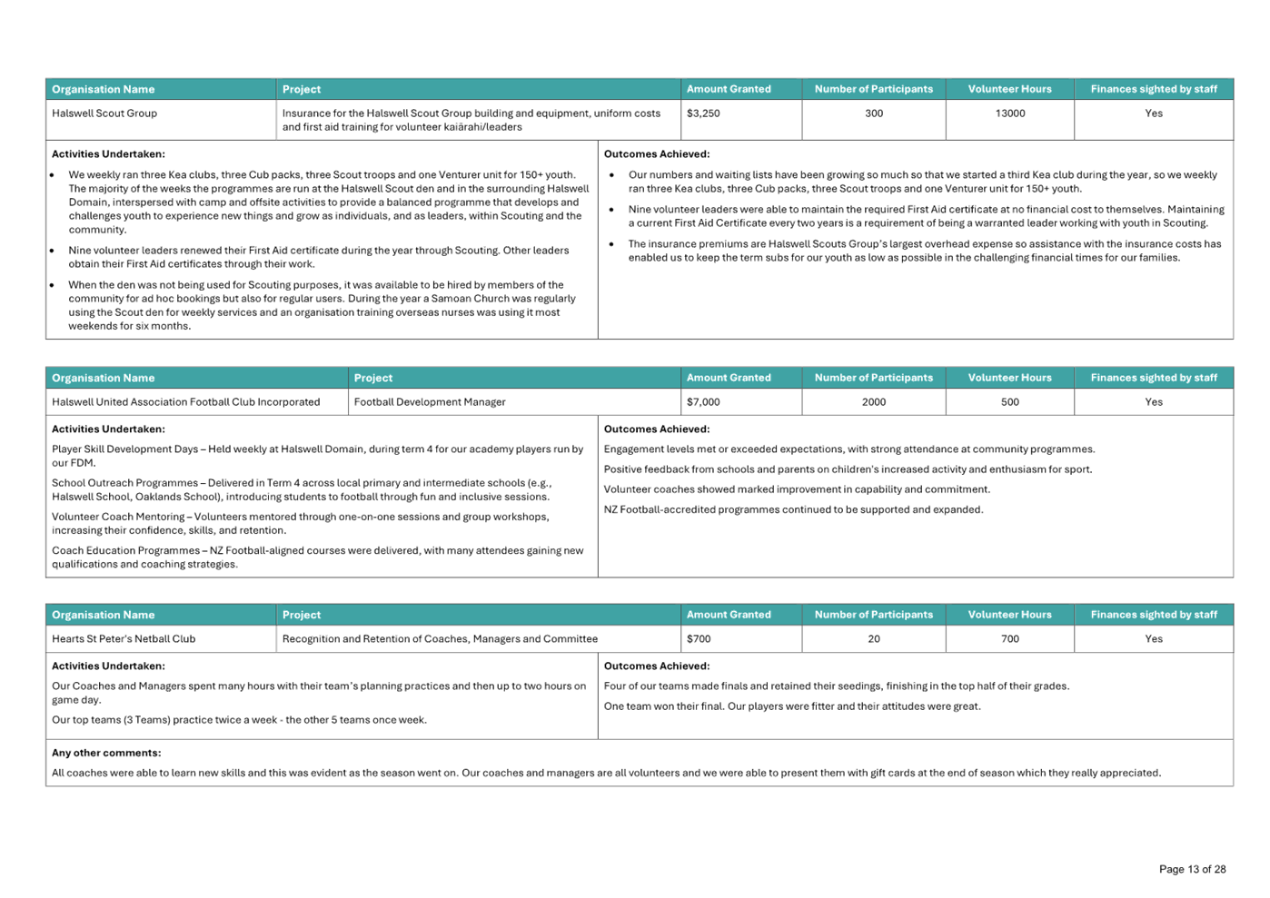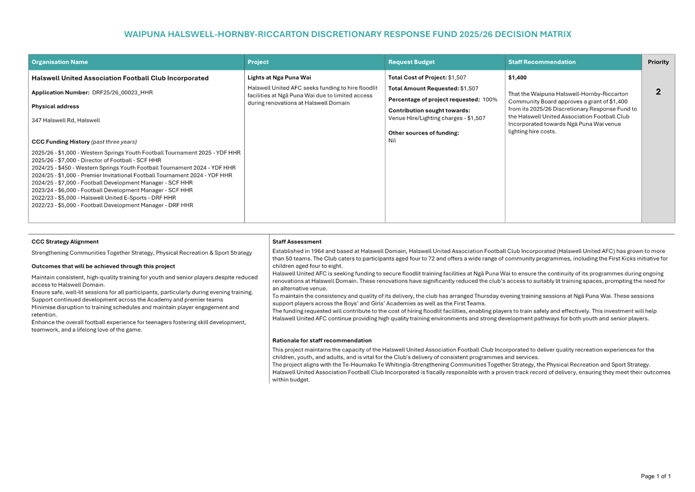 C 12. Waipuna Halswell-Hornby-Riccarton Community Board Discretionary Response Fund 2025-26 Halswell United Association Football Club Incorporated.......... 235