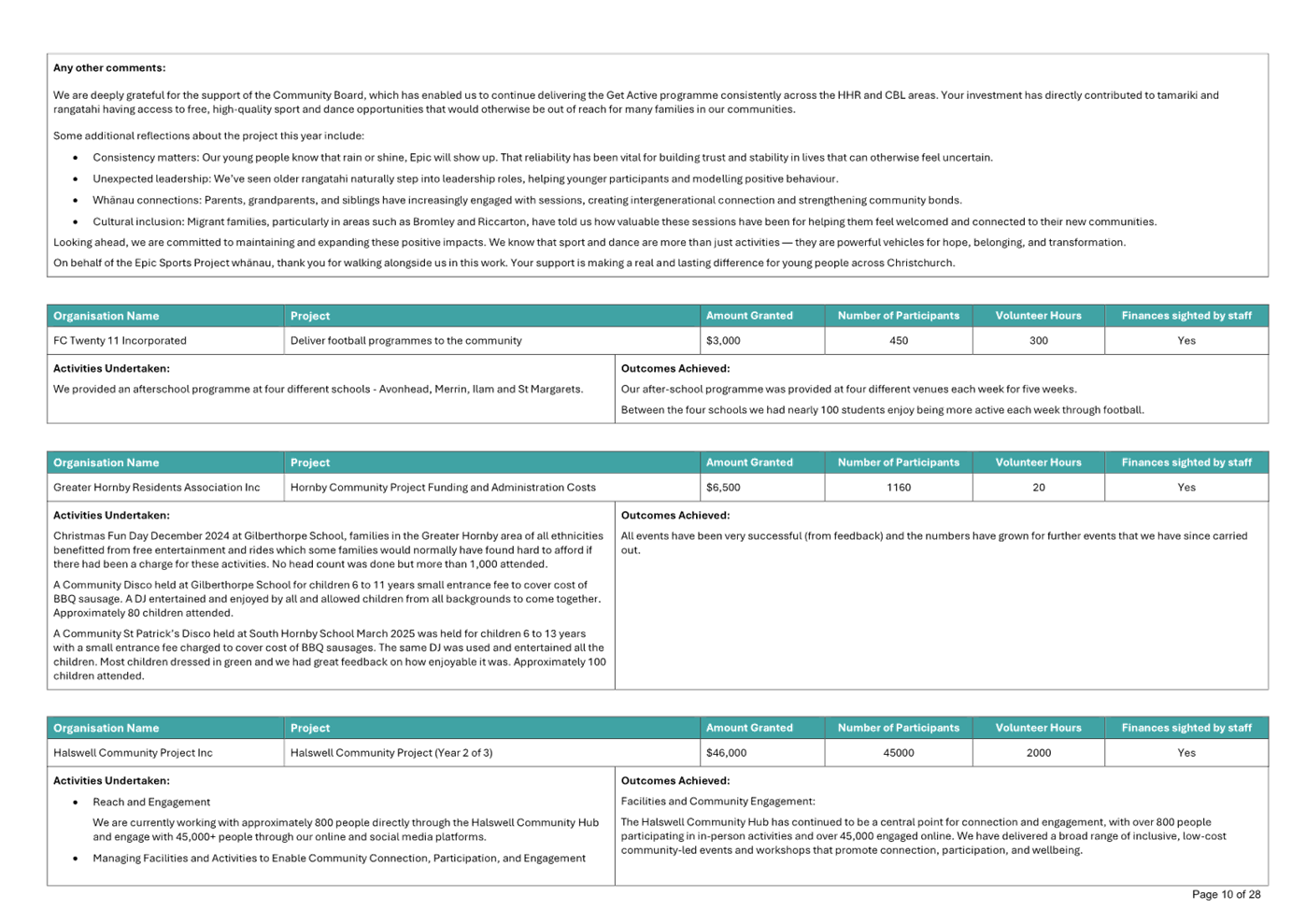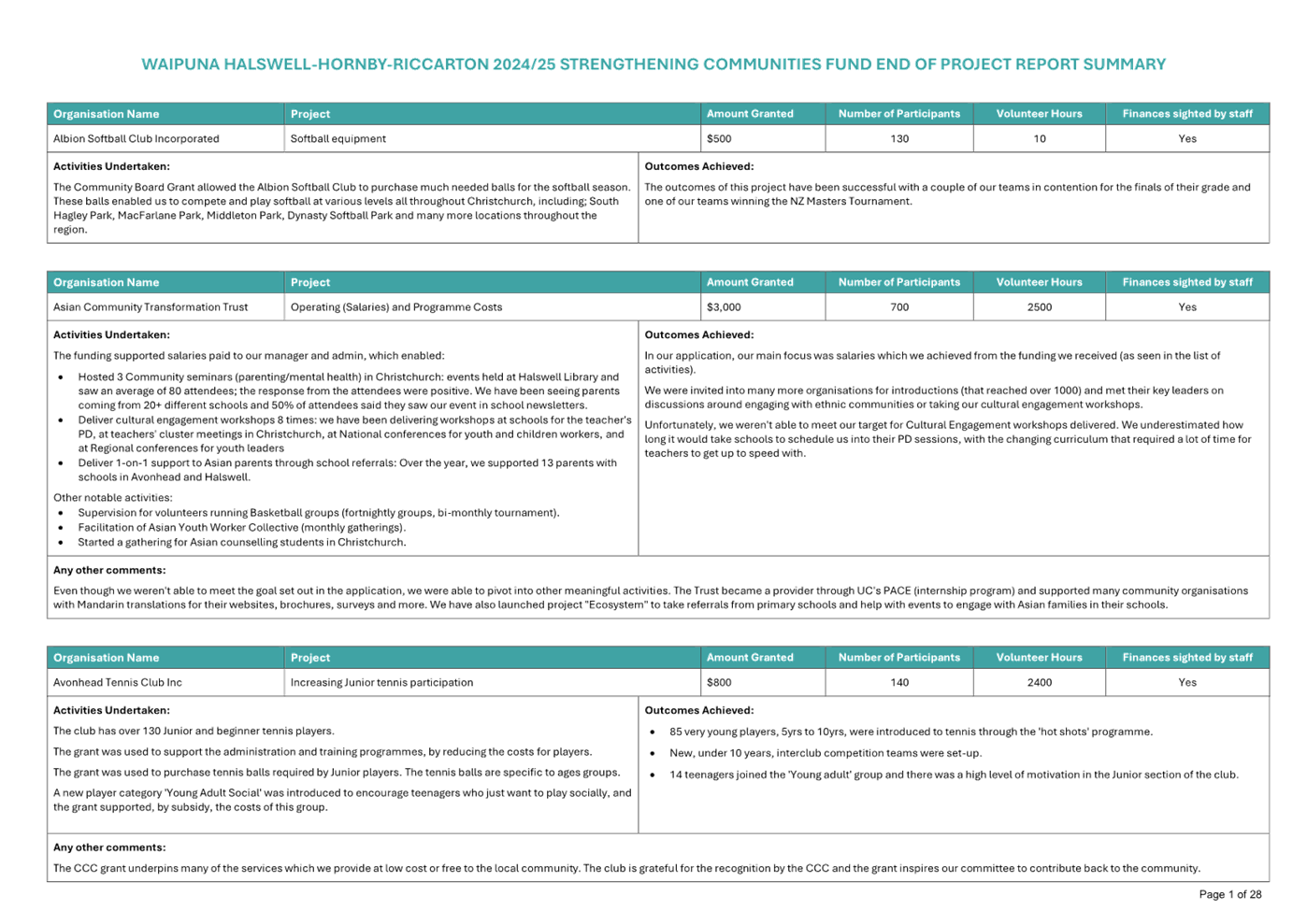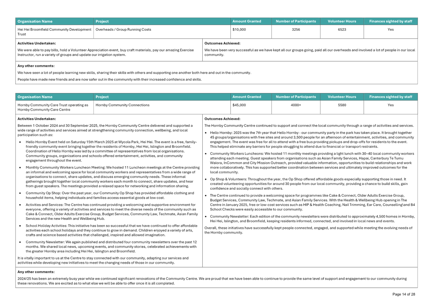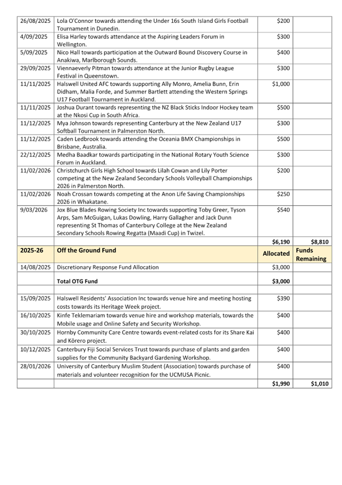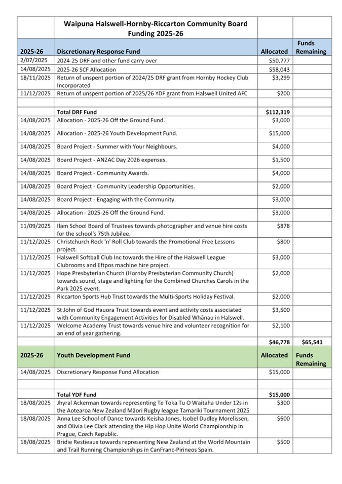 Waipuna Halswell-Hornby-Riccarton Community Board Funding Update - 26 March 2026 |