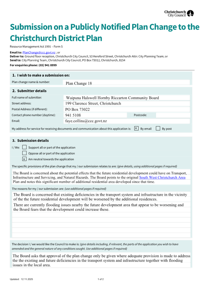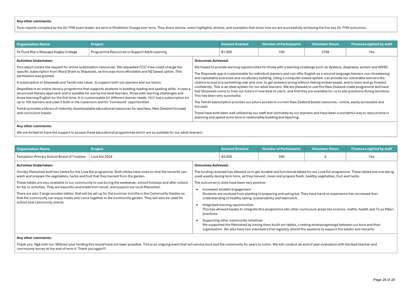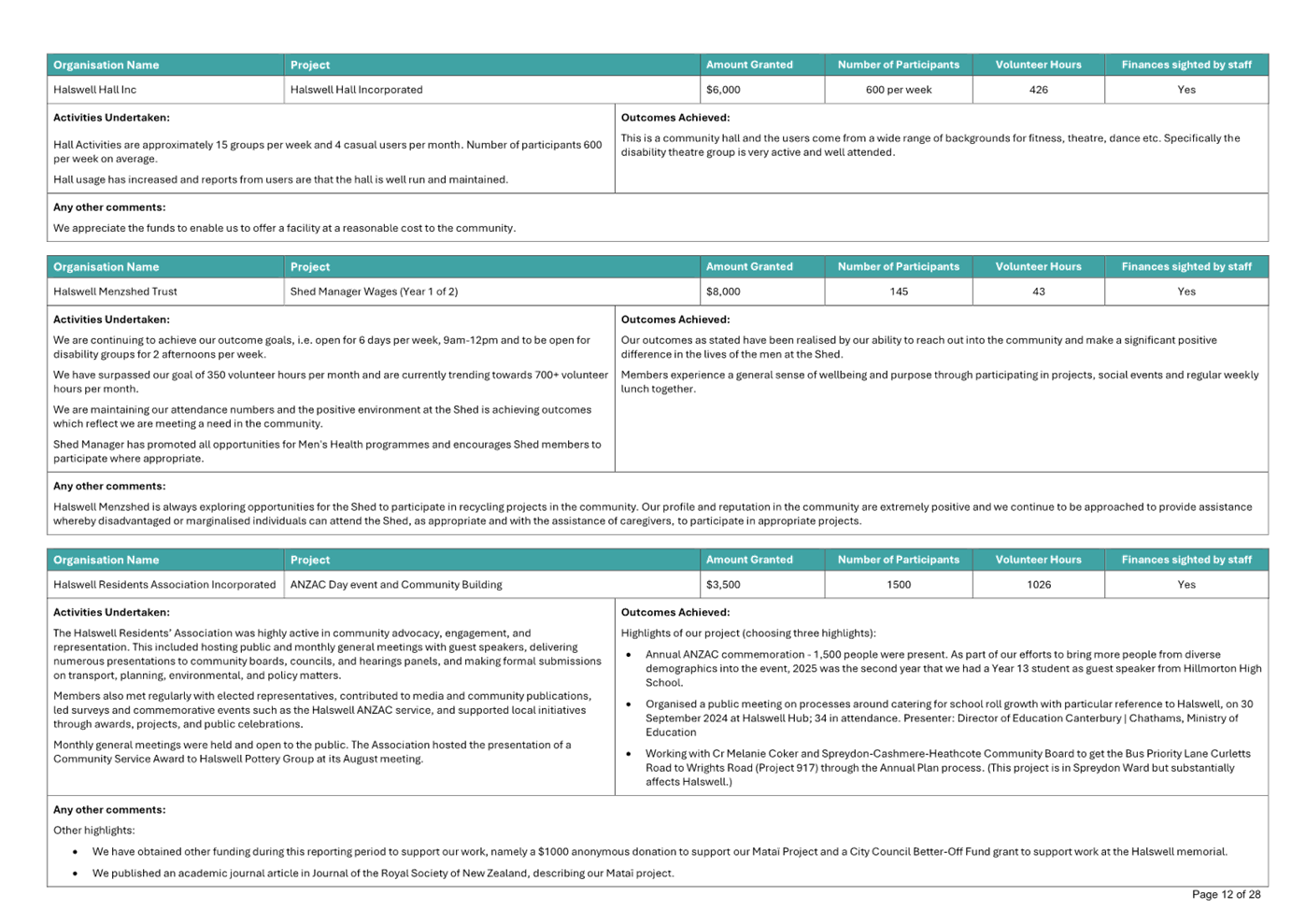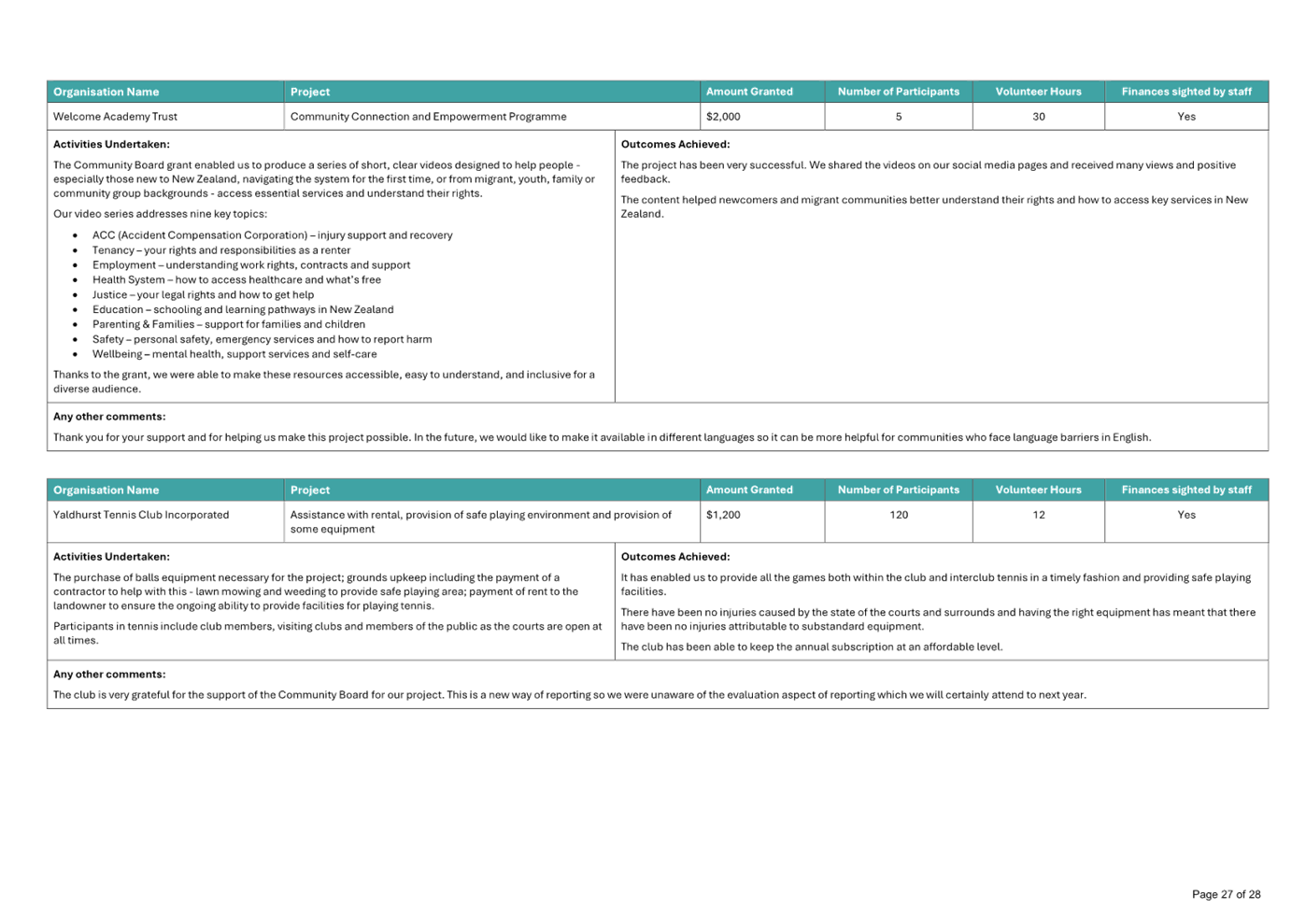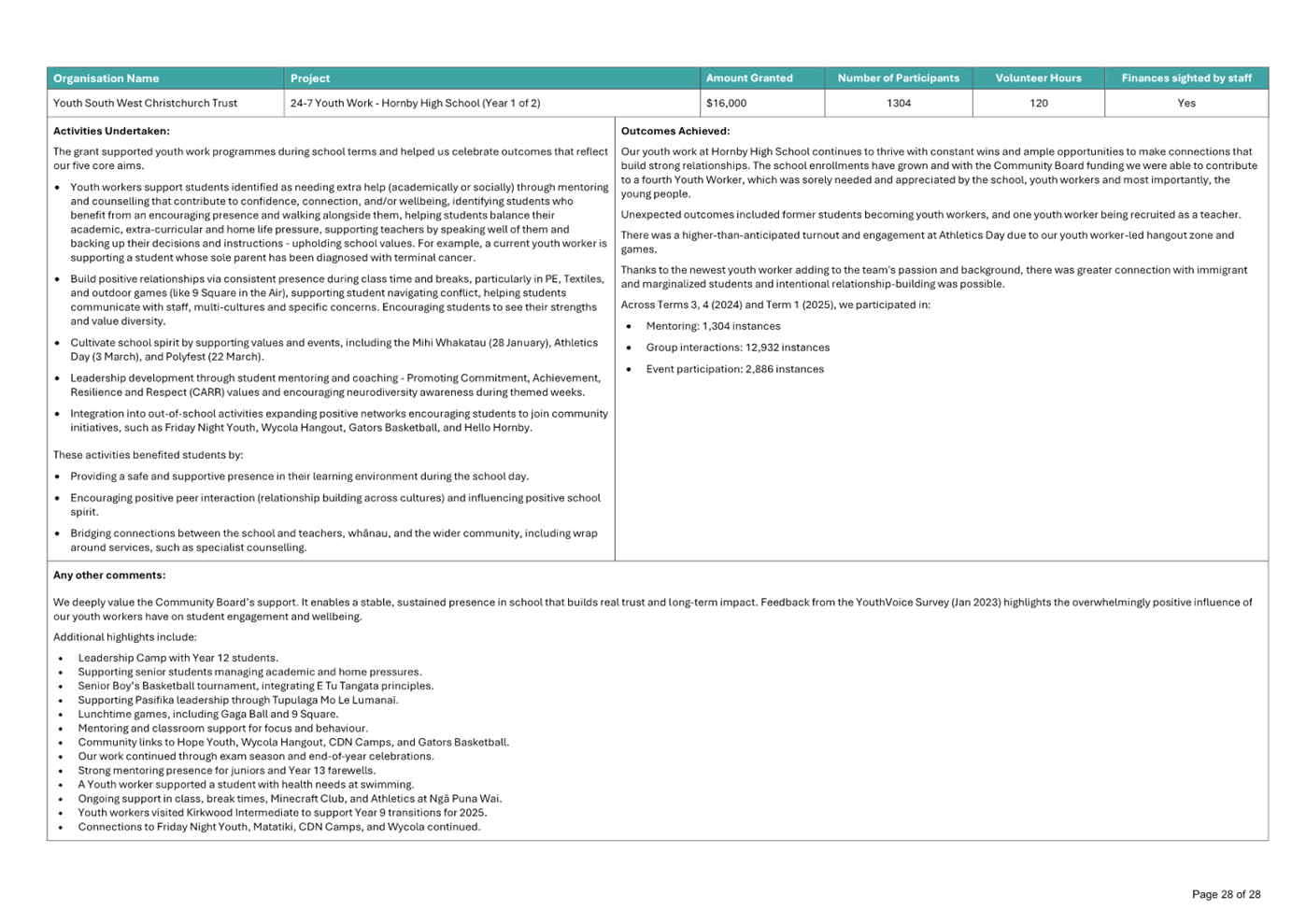 Waipuna Halswell-Hornby-Riccarton Community Board Funding Update - 26 March 2026 |