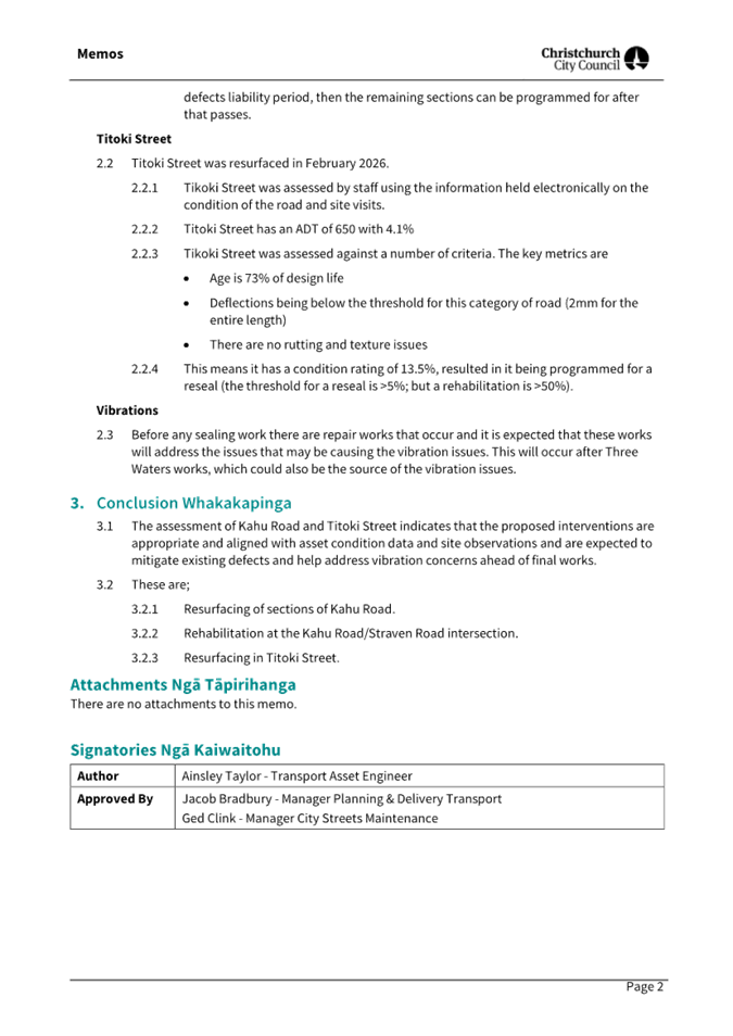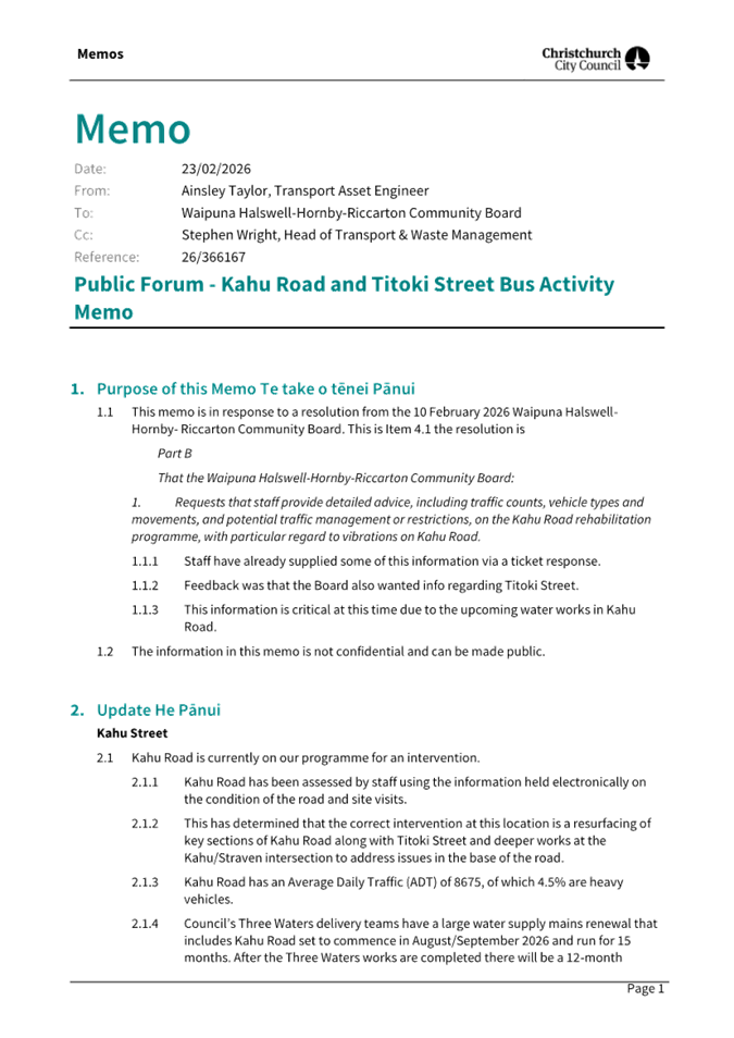 Staff Memorandum - Kahu Road and Titoki Street Bus Activity |